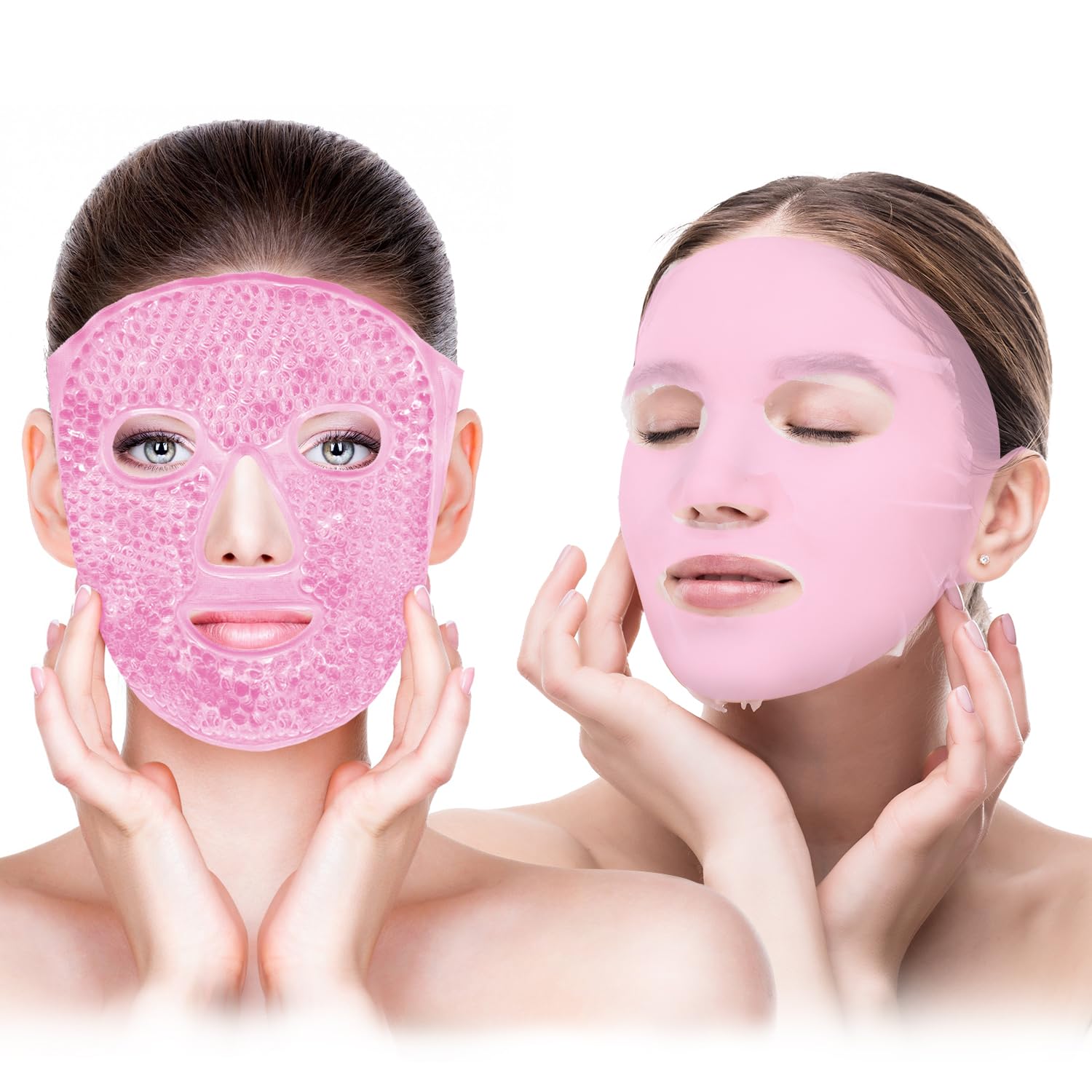 Ice Face Mask and Silicone Face Mask Cover Set, Ice Mask For Dark Circles, Puffiness, Migraines, Headache, Stress, Redness,Reusable Anti-Wrinkle Silicone Face Mask Holder for Sheet Masks(Pink)