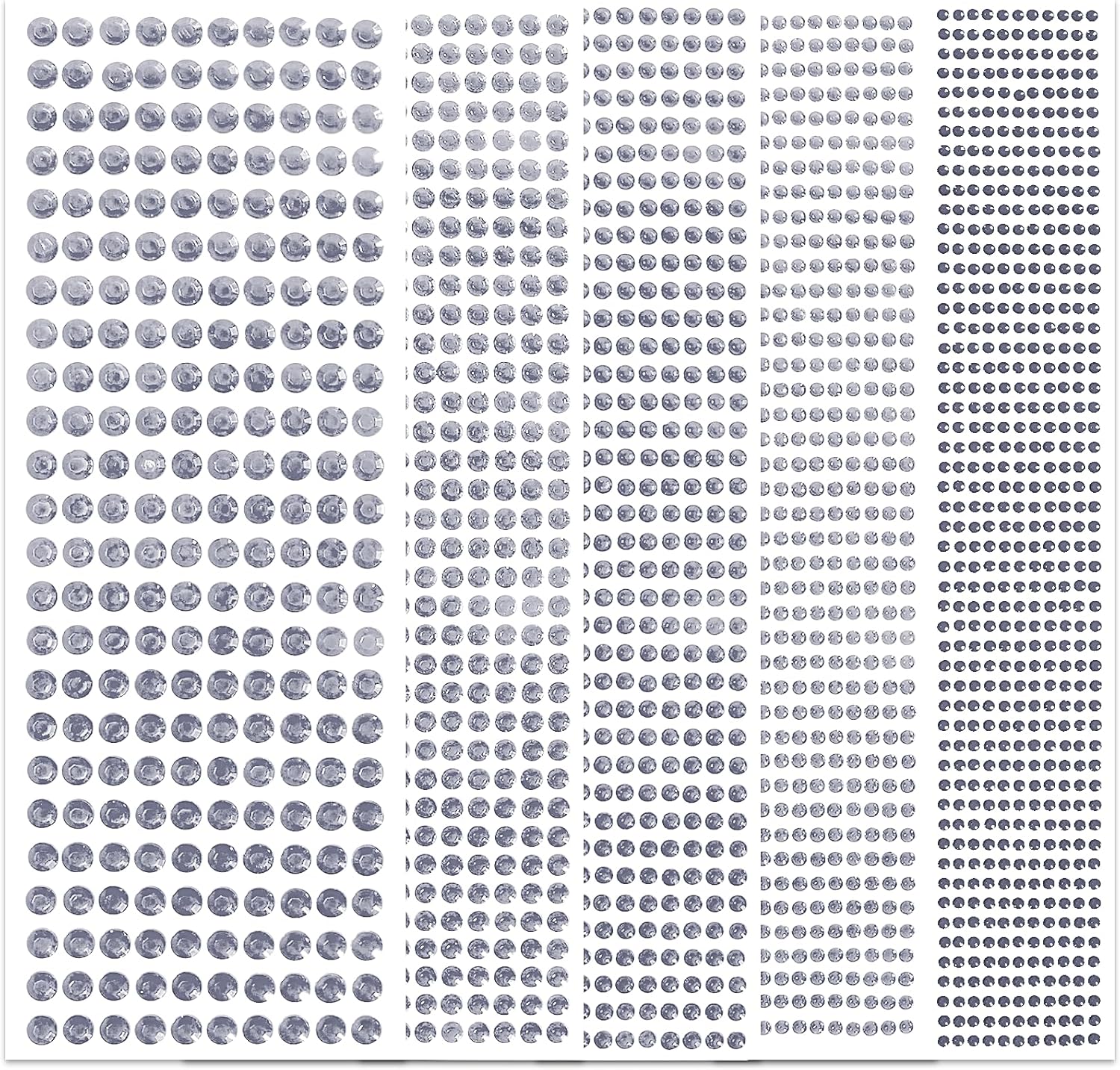 - 💎[ Value Set ] Package contains 5 sheets rhinestone stickers, 3555 pieces nail gems in 5 sizes, including 1325pcs of 3mm, 840pcs of 4mm, 646pcs of 5mm, 504pcs of 6mm, 240pcs of 8mm, enough to meet your various makeup and craft projects needs.