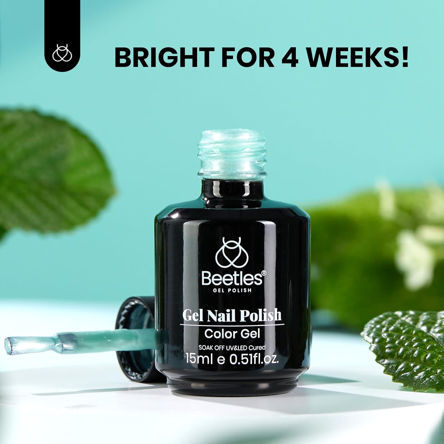 Beetles Mint Green Gel Polish, 15ML Mint Green Glitter Nail Polish Pearlescent Shimmer Mermaid Gel Nails Soak Off U V LED Nail Lamp Need Manicure Salon DIY Nail Art Design