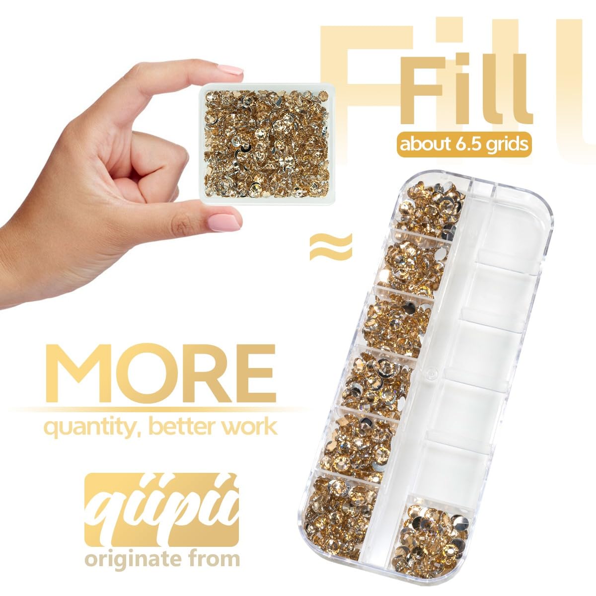 Champagne Crystal Resin Rhinestones for Crafting 3mm 4mm 5mm Golden Flatback Stones Diamonds Crystals Gems Charms for Nails Face Eyes Makeup Body Tumblers Bottles Mugs DIY Crafts Clothes Shoes