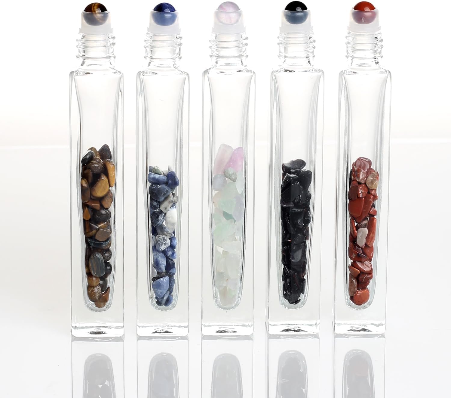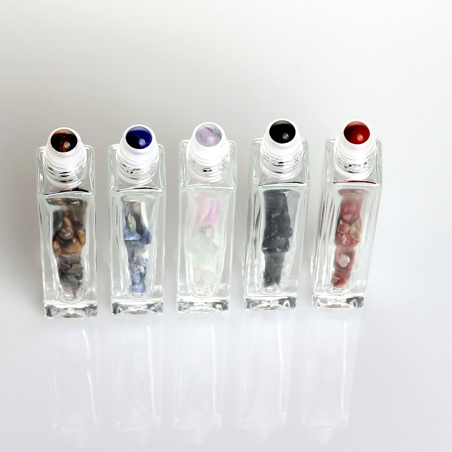 10ml Gemstone Roller Square Bottles Refillable Roll On Bottles Healing Crystal Chips Inside For Perfumes Aromatherapy Oils 5pack