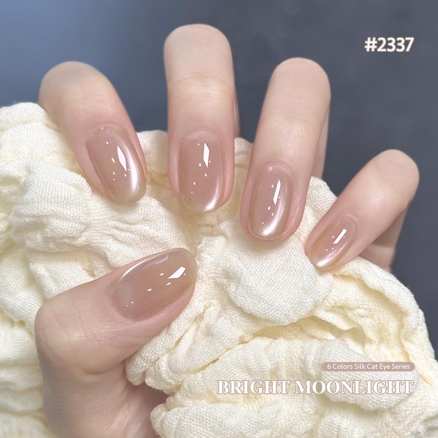 GAOY Cat Eye Gel Nail Polish Set with Magnet for Pink Brown Glitter Holographic Cat Eye, Salon Gel Manicure and Nail Art DIY at Home, Bright Moonlight