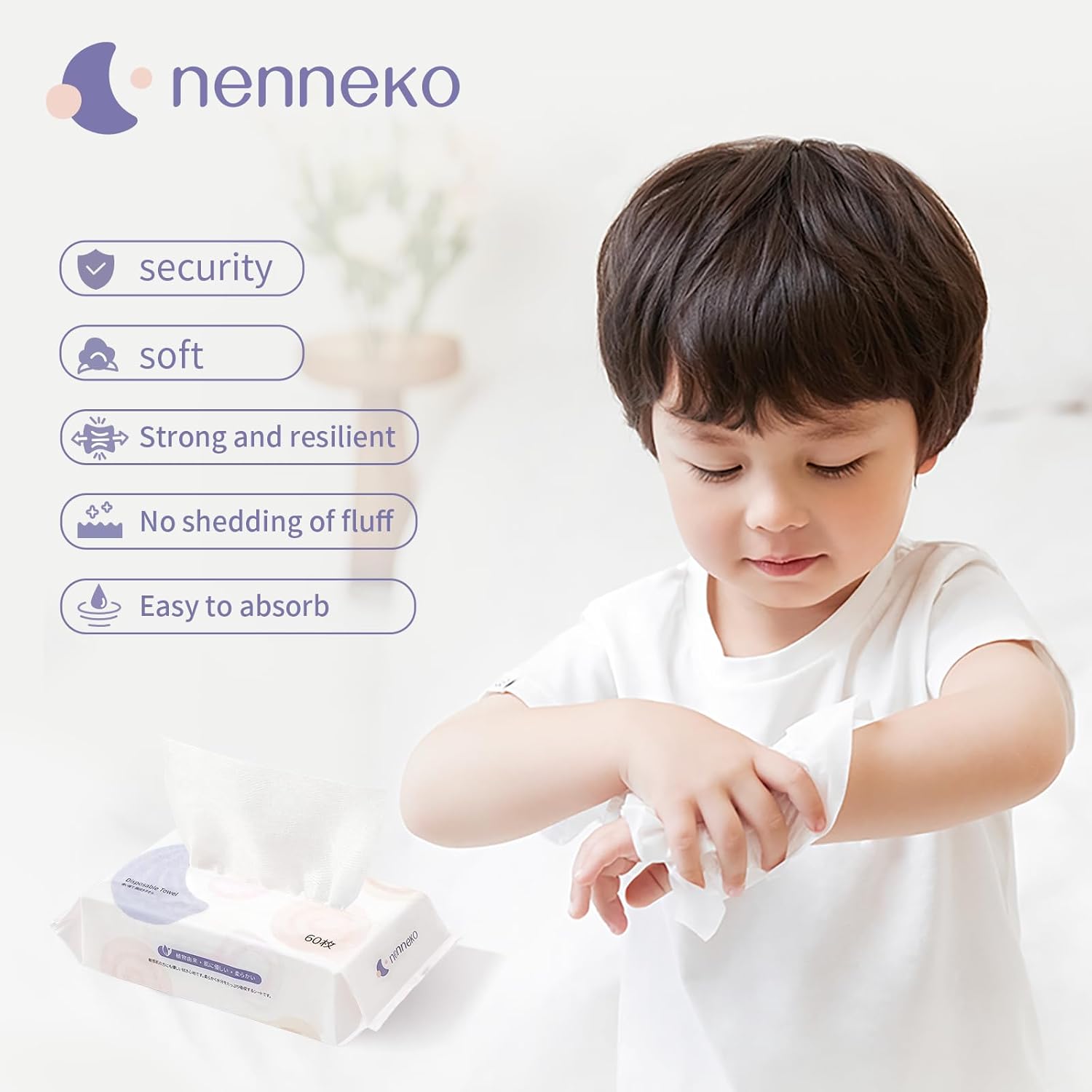 - Spunlace Nonwoven Material:Nenneko cashmere texture made by spunlace nonwoven, twice thicker than regular paper towel, but softer, gentler and stronger. These disposable cloth-like tissue, ideal for surface cleaning, kitchen cleanup, makeup removal, and baby care.