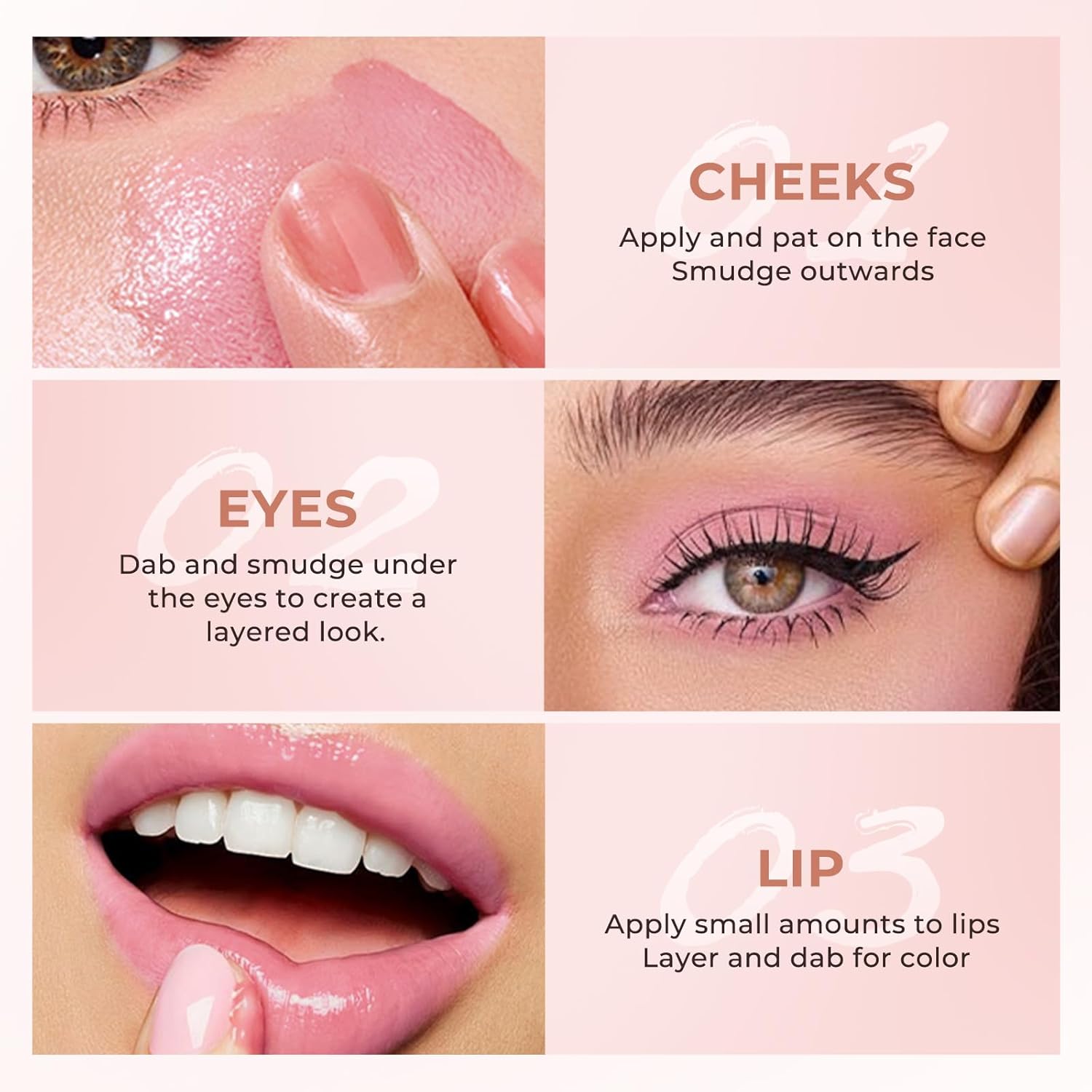 Jolilab Blush Makeup Color Changing Blush Palette Cream Blush Powder Palette Long-Lasting Hydrating Pigment High Impact Buildable Color Smooth Finish for Eyes, Lips & Cheeks(2, pink, 1)