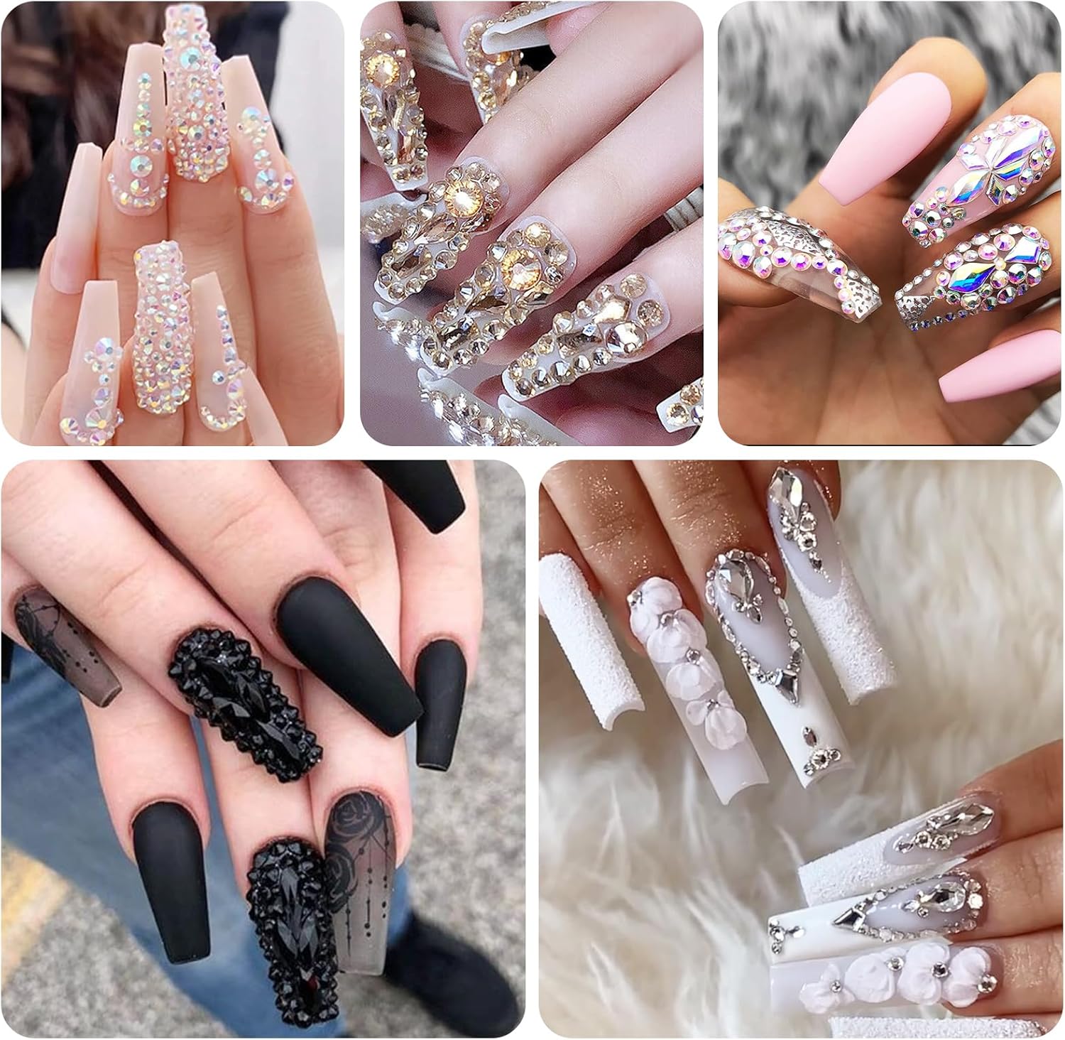 - 🌺 High-Quality Nail Decorations Set: The special-shaped 3D diamond rhinestones are made of K9 glass, with advanced rhinestone cutting, shine under the illumunation of lights. The round flatback rhinestones are made of crystal glass too. These are very affordable so you do not have to be worried about breaking the bank to purchase a large amount of glass rhinestones for nail art.