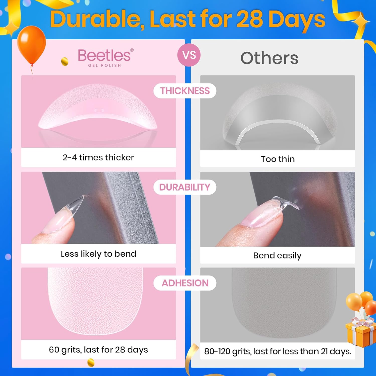 - ❤Fit Nails Perfectly: This 576 PCS false nail tips set comes in 12 sizes for effortless matching to each finger. Each nail tip in the transparent series features a thinner edge to fit your natural nails. The pre-filed design reduces the need for extensive filing.Beetles fall nail tips offer a more natural appearance, resembling nails that have grown out naturally.
