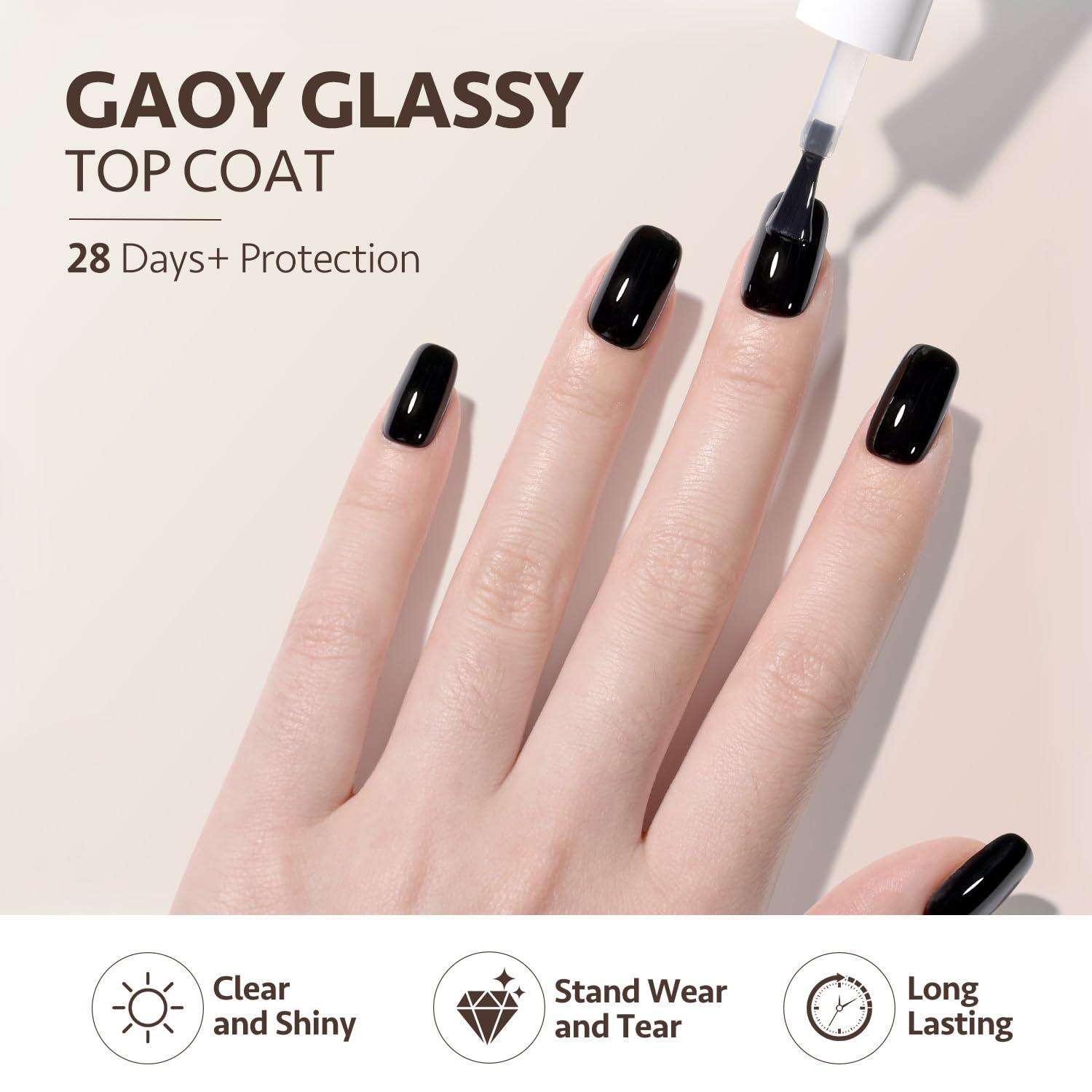 GAOY Gel Top Coat and Base Coat Set, 2 Pcs 7.3ml Glassy Top Coat and No Wipe Foundation Combination for UV Light Cure Gel Nail Polish