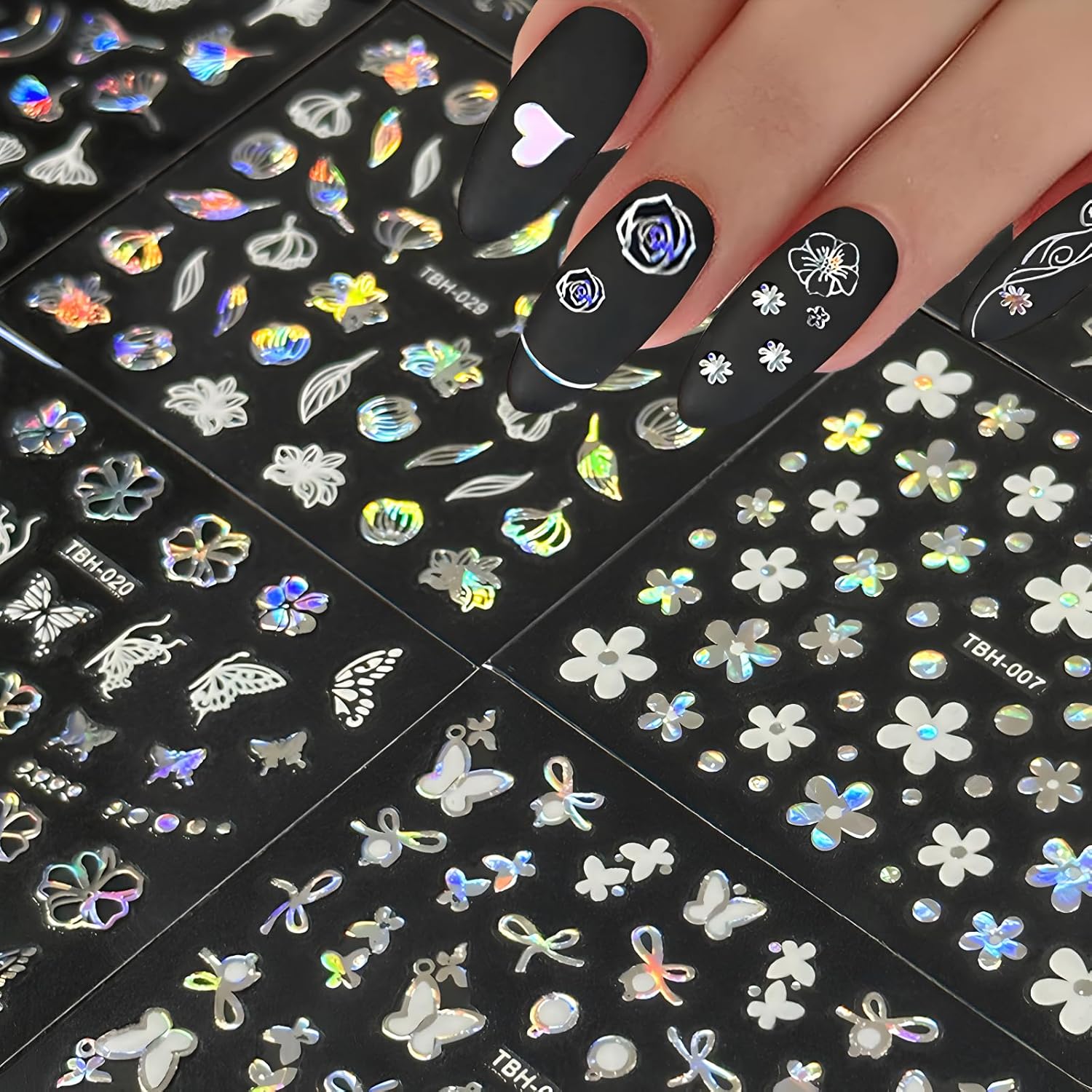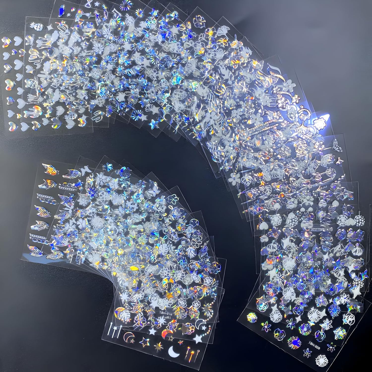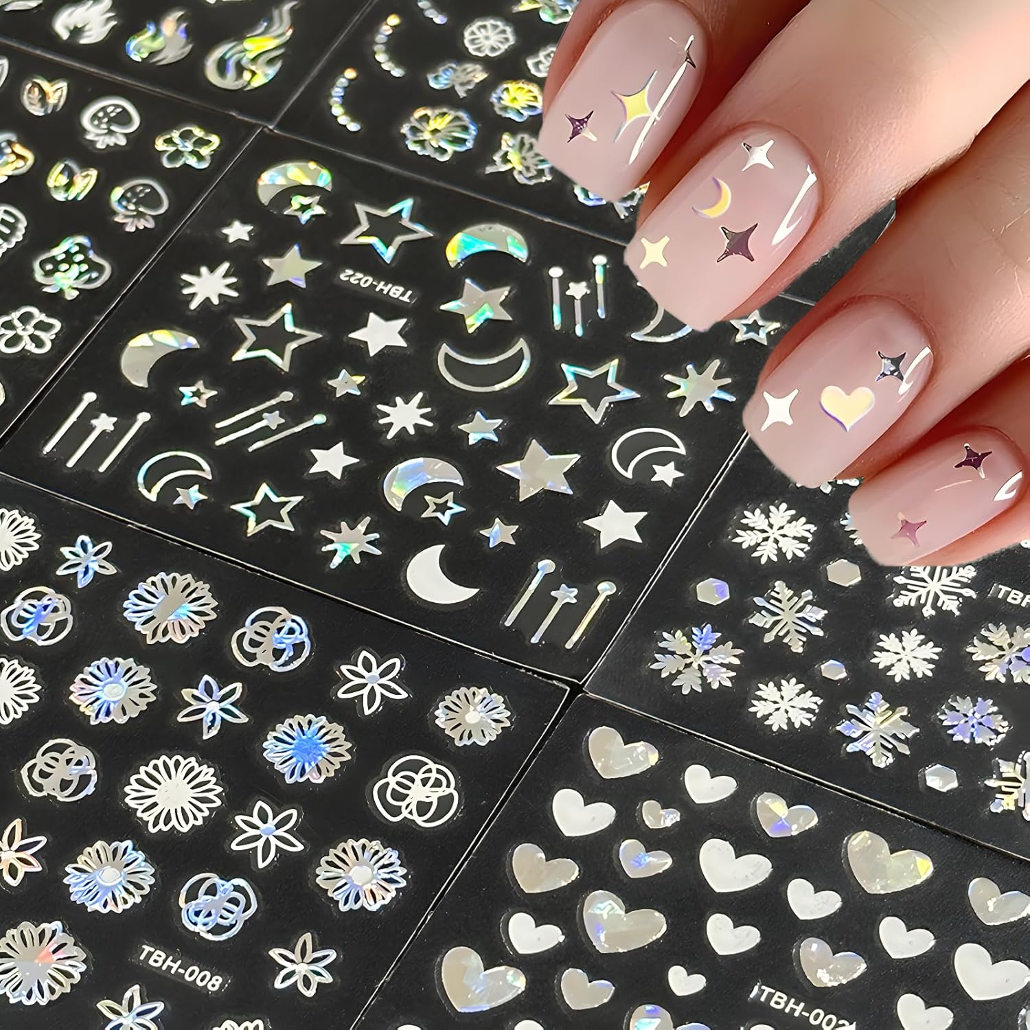 - ăAurora Nail StickersăYou will get 30 sheets aurora nail stickers in one set of different star,moon,flower,leaf,butterfly,heart and snowflake shapes cute nail stickers, satisfy all your love for beautiful nails, a variety of elements for you to choose from to DIY your own nail art design.