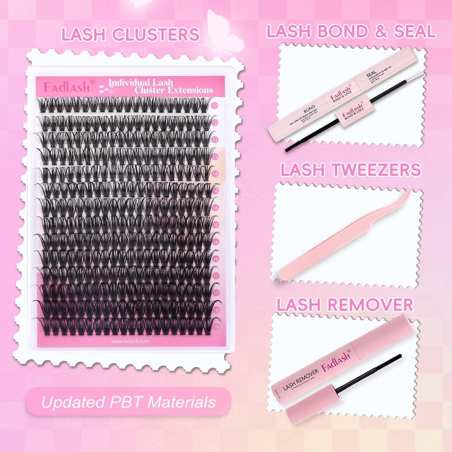 - 【DIY lash extension Kit】:DIY lash extension kit includes:1 tray mix length cluster lashes,1 lash bond and seal(2 in 1),1 Cluster Lashes Glue Remover1 lash applicator tweezer. Our DIY lashes kit includes all the necessary tools. Achieving the perfect extension look with our DIY eyelash extension kit