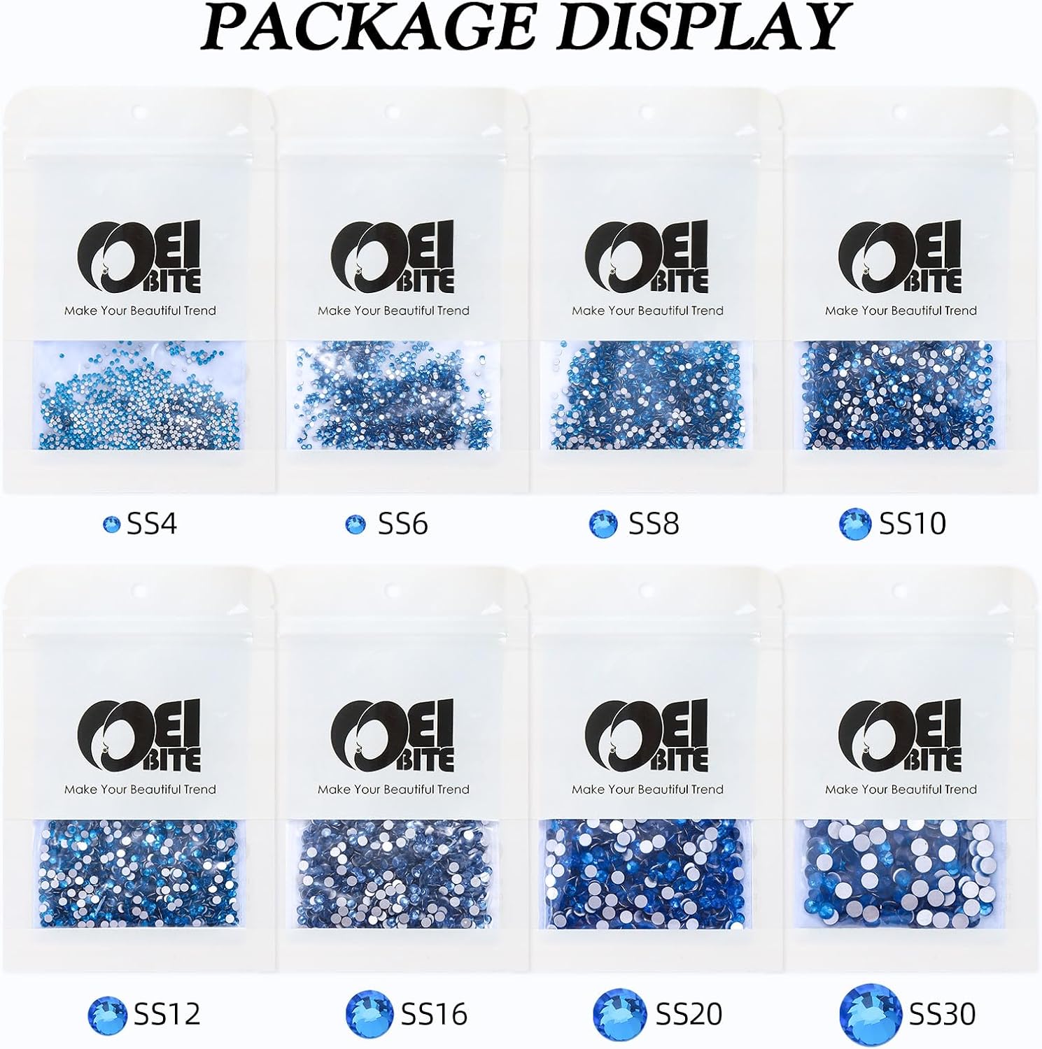 - Product Packaging: Bags packaging SS8 2.3~2.5 MM - 1440 Pcs Capri blue flatback rhinestones
