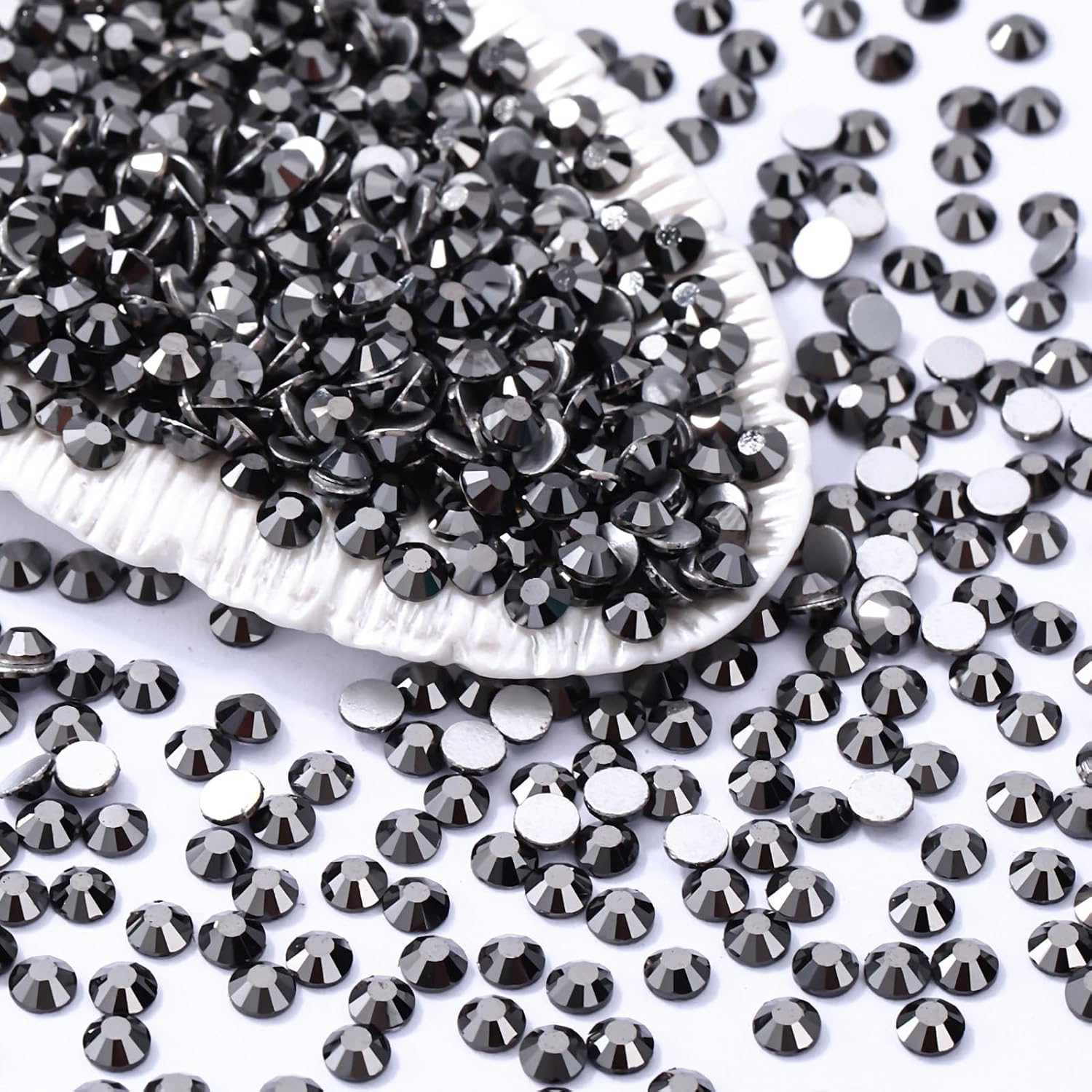 Black Hematite Flatback Rhinestones, Glass Rhinestones for Nail Art and Craft, Glue Fix, Loose Crystal Gemstones(Black Hematite, SS8, 1440pcs, 2.3-2.5mm)