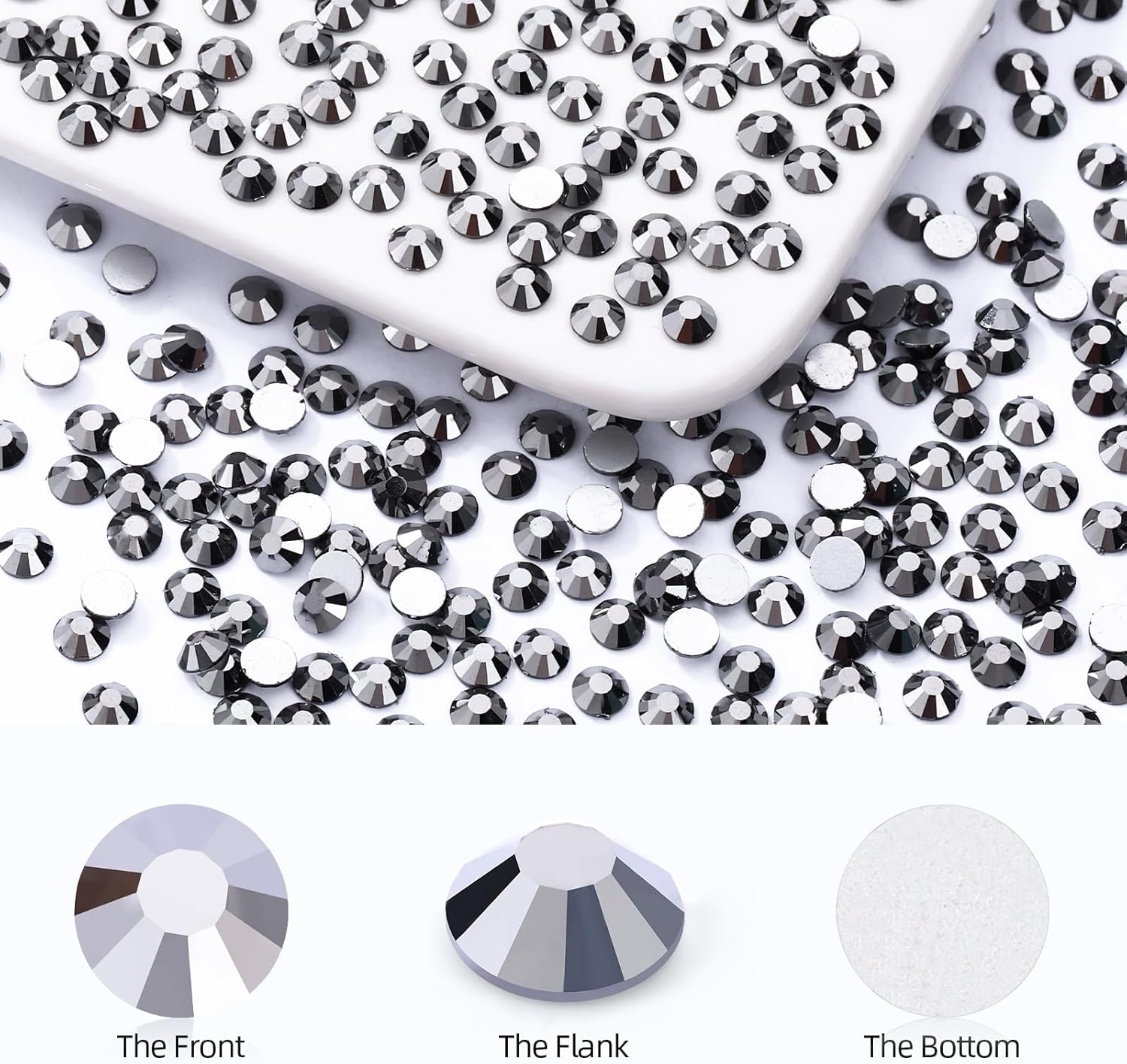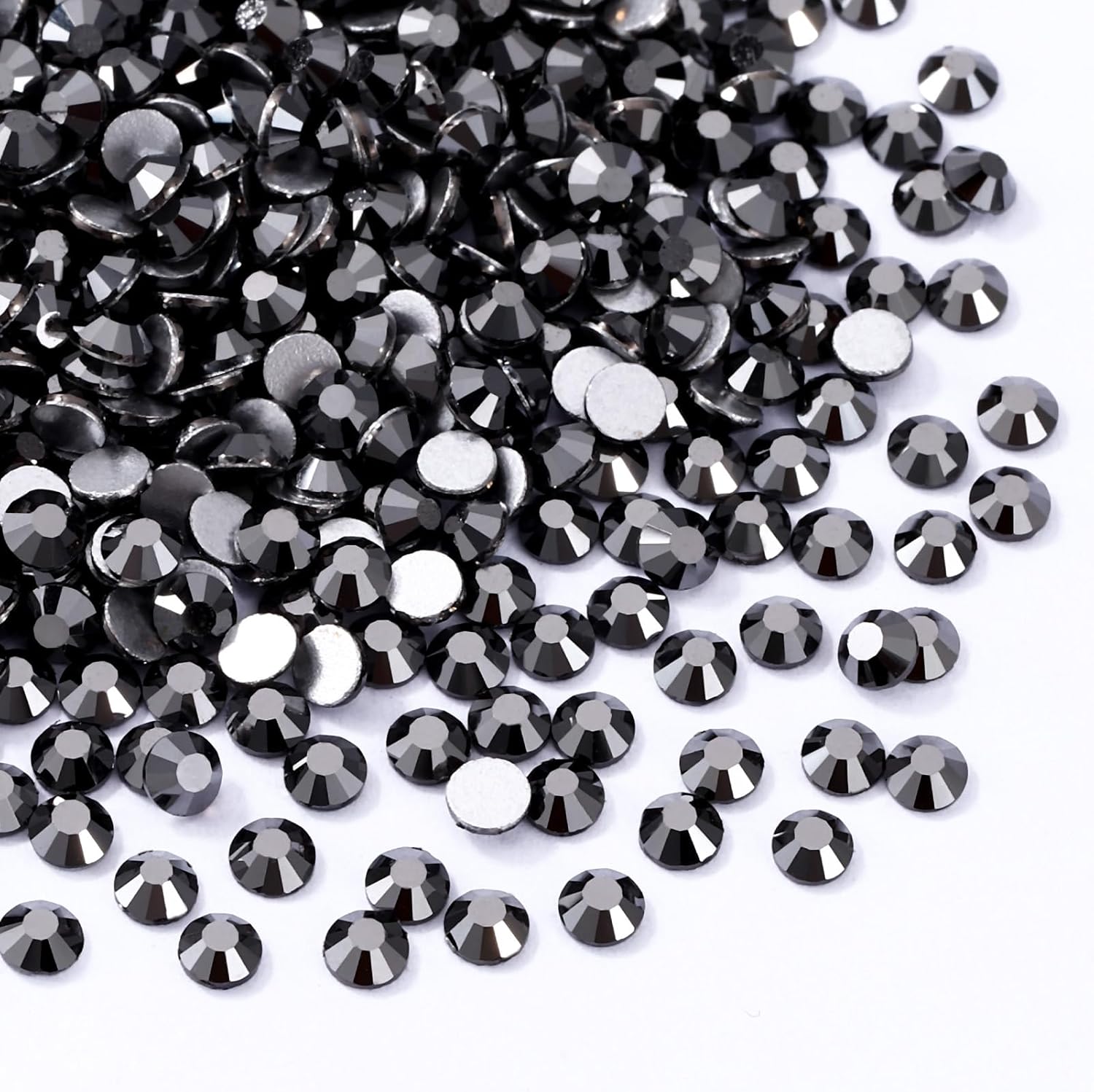 Black Hematite Flatback Rhinestones, Glass Rhinestones for Nail Art and Craft, Glue Fix, Loose Crystal Gemstones(Black Hematite, SS10, 1440pcs, 2.7-2.8mm)