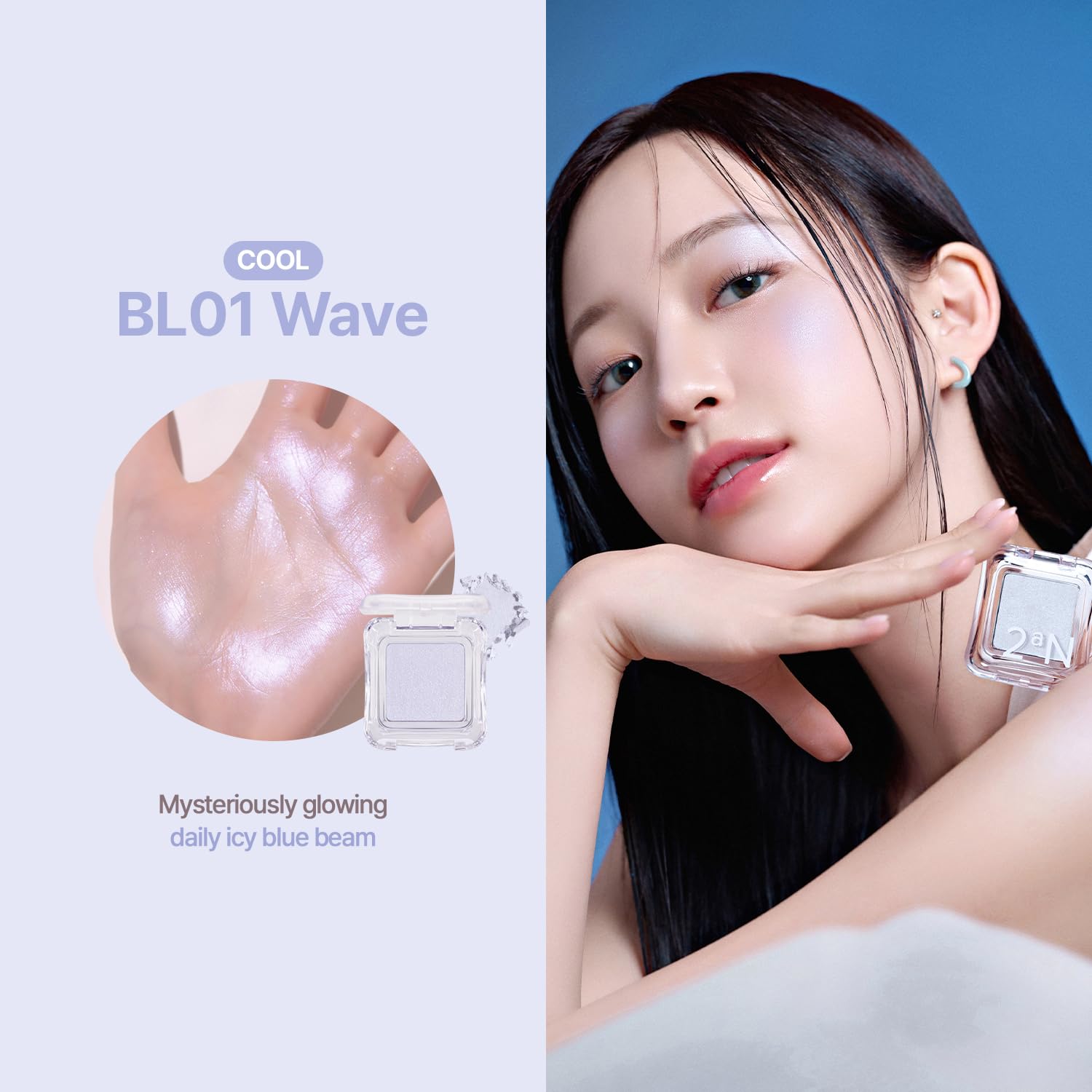 2aN Pure Glash Highlighter – Glass-Like Sheen Powder Highlighter for a Natural, Radiant Glow | Buildable, Long-Lasting, Lightweight Formula (WAVE, 0.8oz)