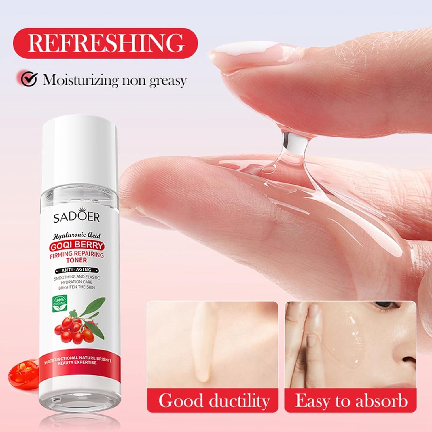 - đăGoji Berries Skin Care Setsă- This 7-in-1 skin care set updates your daily skin care routine, including toner, serums, face cream, eye cream and facial mask, providing deep hydration for the skin, improving skin metabolism and strengthening the barrier, making skin smoother and firmer.