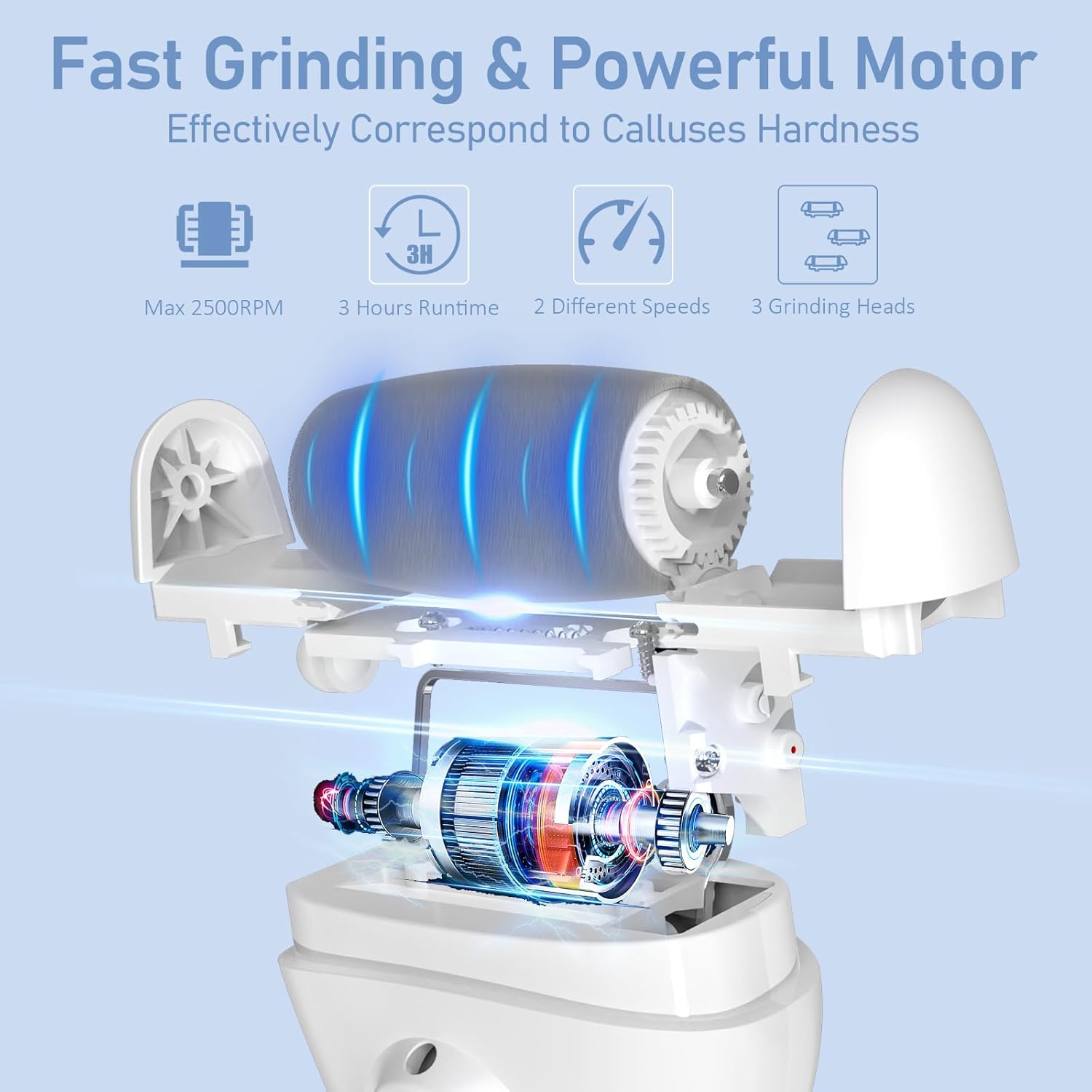 - Electric callus Remover for feet, Powerful & Faster ----- Electric Foot Callus Remover with 2x Strong Motor to buff away hard, dead skin in High Speed, Reveal baby-soft skin in minutes with no prep time. upgrade 2500RPM and 2 Speed- Fast grinding without damage to the healthy skin, best callus remover for feet, Ideal pedicure spa kit gift for men and women.