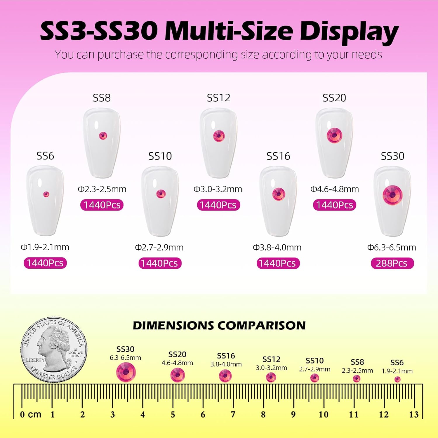 F Rose Flatback Rhinestones, Glass Rhinestones for Nail Art and Craft, Glue Fix, Loose Crystal Gemstones(F Rose, SS8, 1440pcs, 2.3-2.5mm)