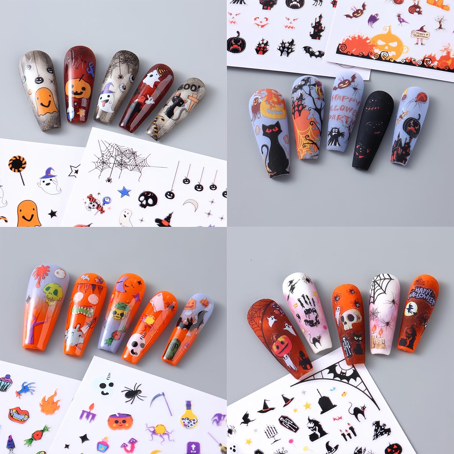 - Halloween Nail Stickers- You will get 8 sheets spider web nail art stickers for acrylic nails supply, many pattern for you to choose, colorful skull nail designs, and satisfy your rich imagination of nail DIY