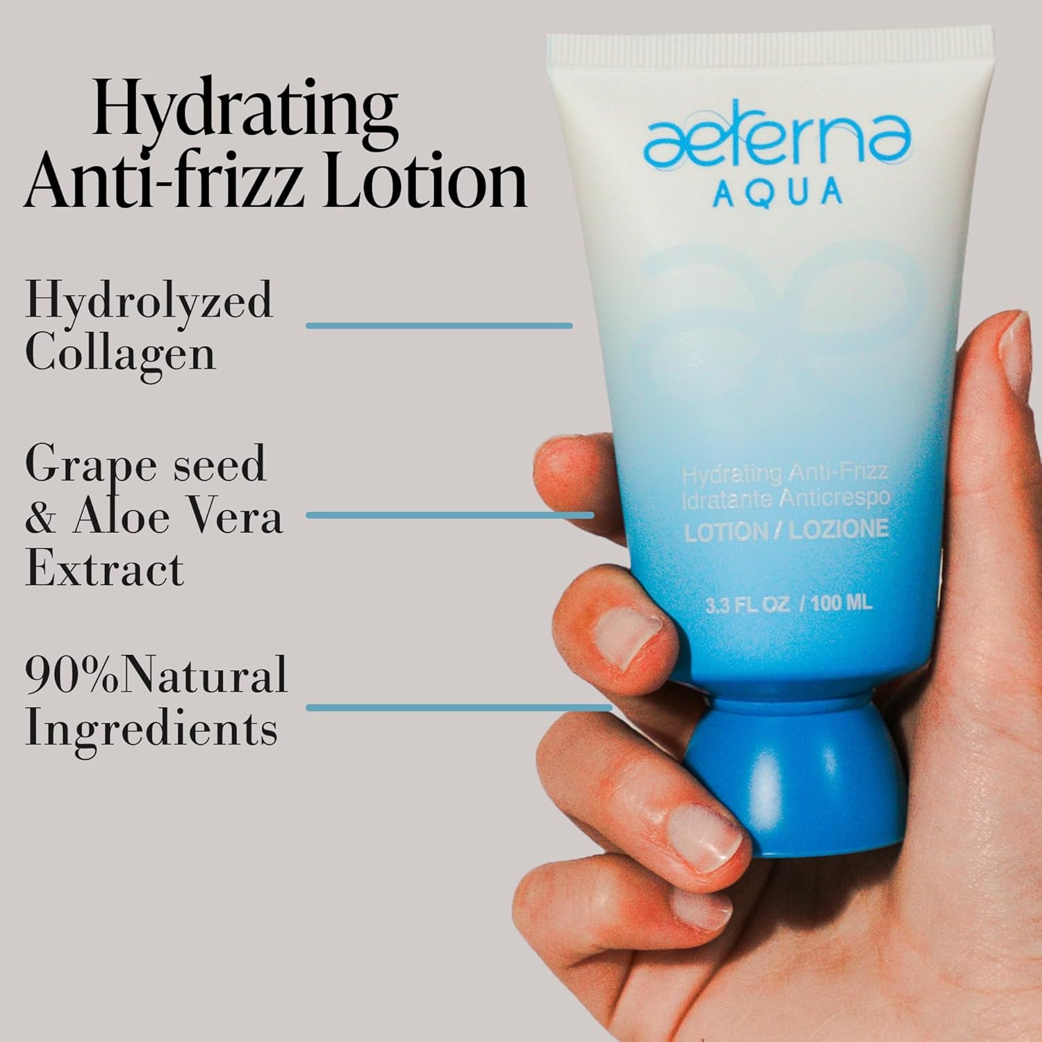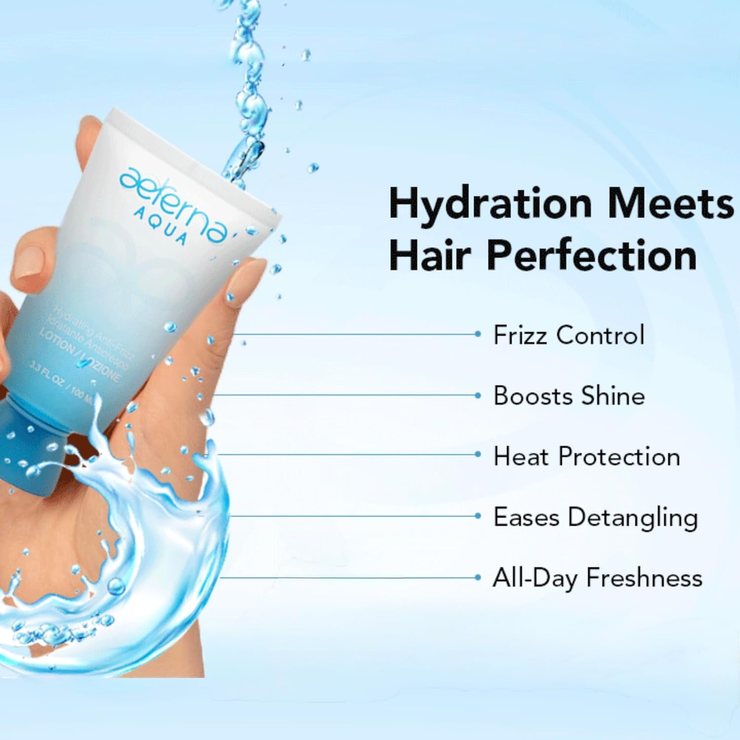 Aeterna Aqua Hydrating Anti-Frizz Hair Lotion | Frizz Ease, Deep Moisture & Color Protection - Vitamin E, Grape Seed & Collagen Infused, for All Hair Types - 100 ml