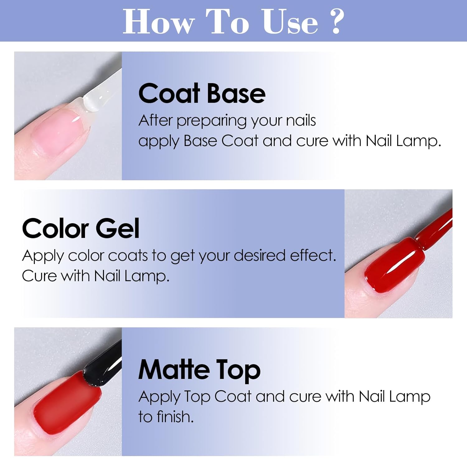 - No Wipe Matte Top Coat: 15ml Large Capacity no wipe gel top coat. it protects your nails from chipping and peeling, so you can enjoy your manicure for longer.