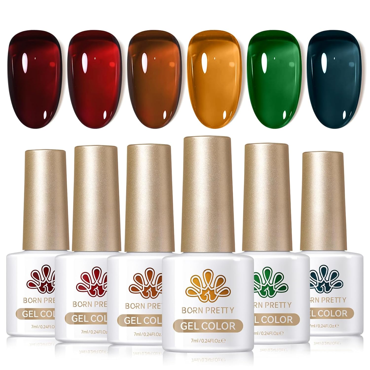 Born Pretty Jelly Gel Nail Polish,Halloween Fall Winter Transparent Gel Polish,Christmas Brown Blood Wine Red Orange Green Blue,Soak Off U v LED Light Cure Nail Art Kit for Salon and DIY at Home