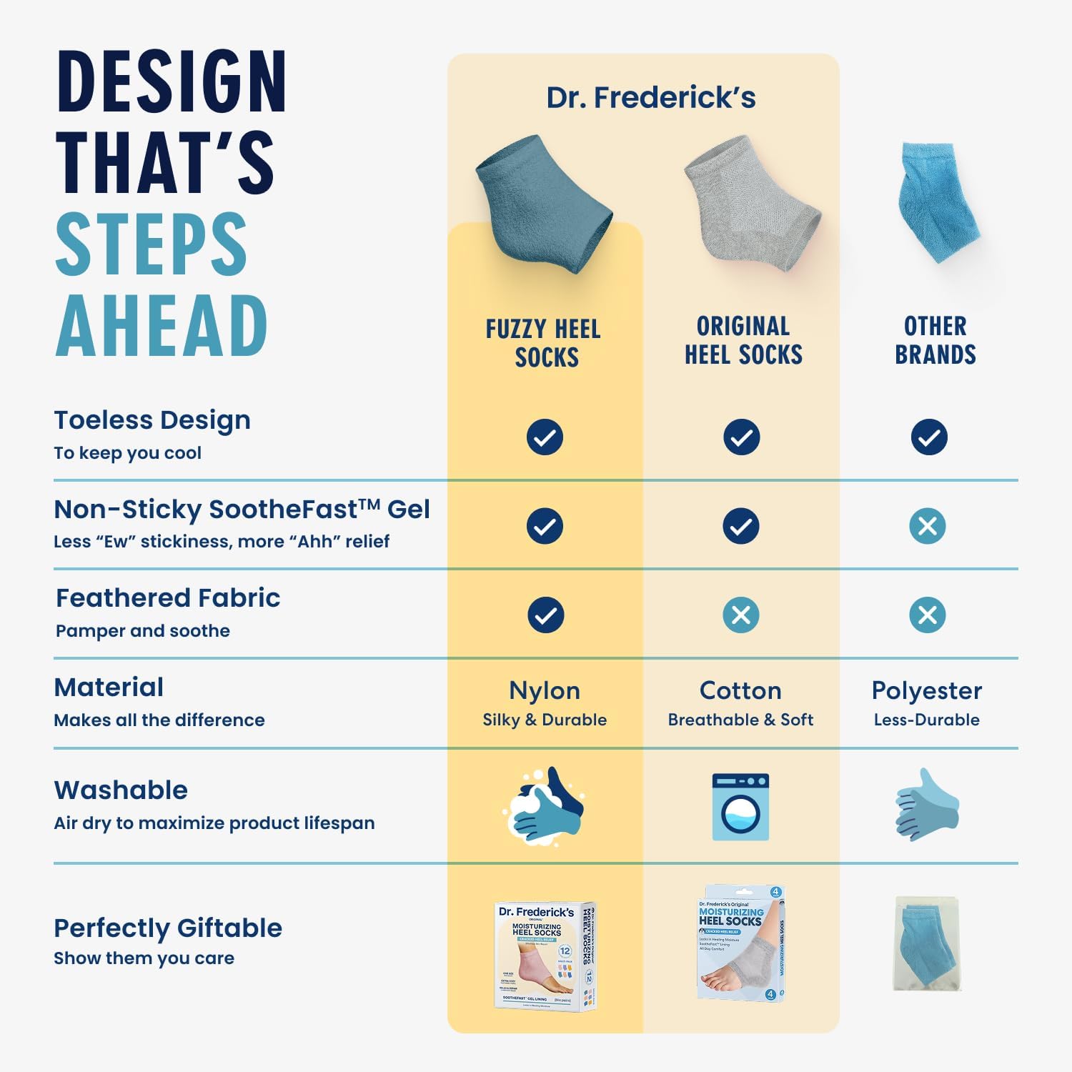 - Visible Results Fast: Dr. Frederickās Original Fuzzy Heel Socks are expertly developed to transform dry, rough feet into soft, smooth soles. Most users see a difference after just one night, with best results achieved after one week of consistent use.