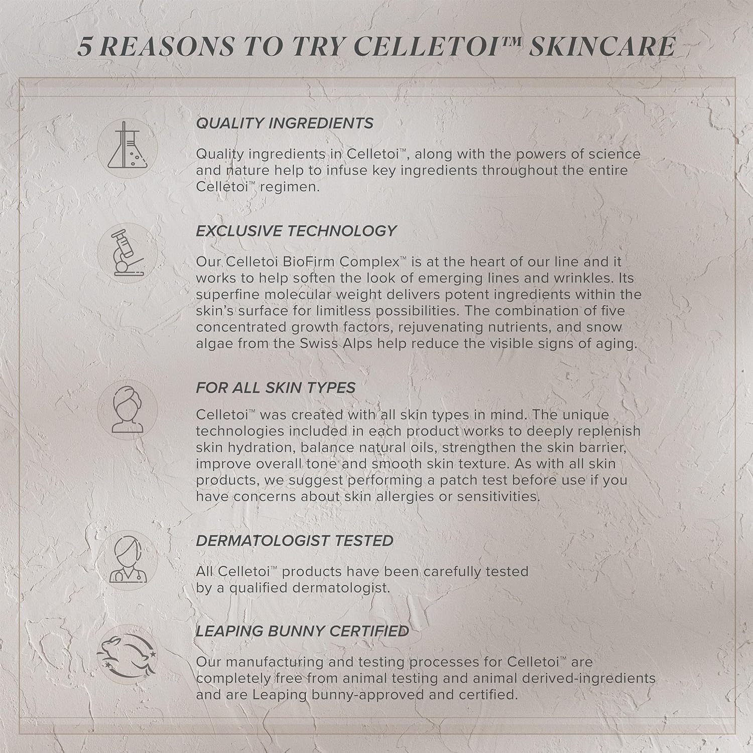 - Environmental protection: Infused with the Celletoi Botanical Blend, our cleanser contains ginseng, green tea, lavender, turmeric, and more to combat harmful environmental stressors. Protect your skin while achieving a radiant glow