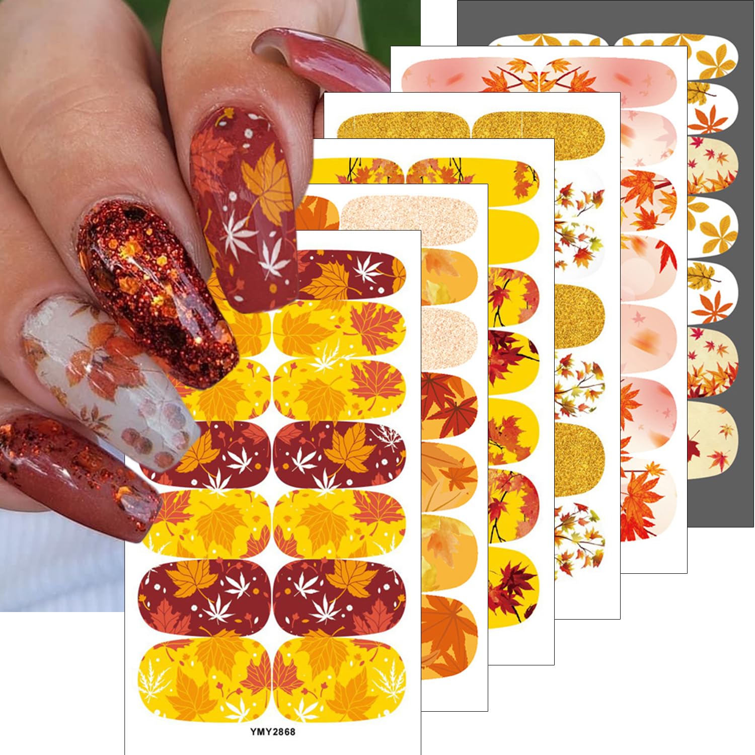 Autumn Maple Leaf Gel Nail Wraps - Thanksgiving Decals, 6 Sheets