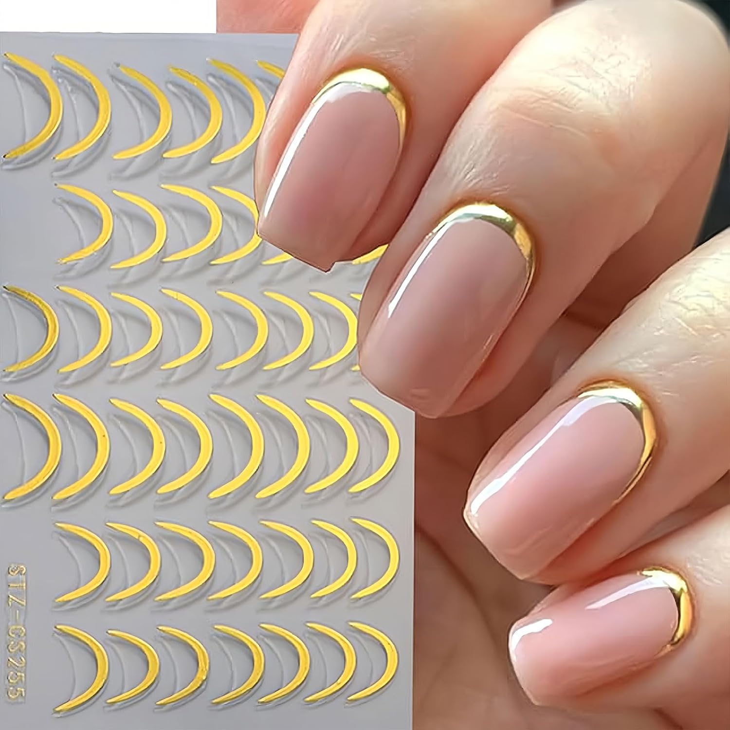 - 2025 French Tip Nail Stickers-- 8 sheets exquisite French lines nail art decals. 350+ U-shaped line nail designs. Gold/ black/ white/ rose gold 4 color options.