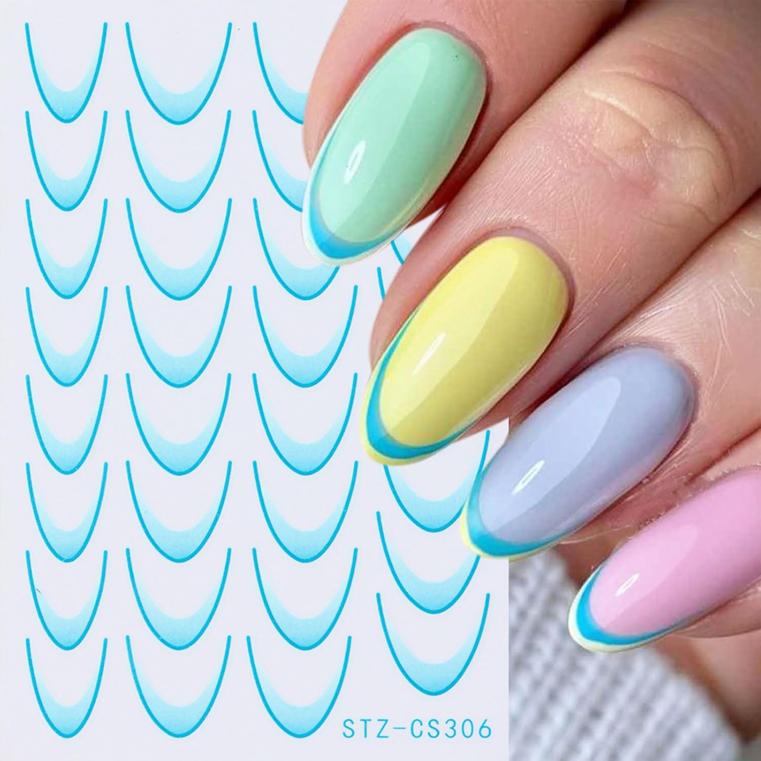 380 Pcs French Tips Nail Stickers, 8 Sheets Self-Adhesive Gradient Orange Black Rose Blue French Tips for Women Girls, 2025 Spring French Tip Nail Stickers Trendy Designs