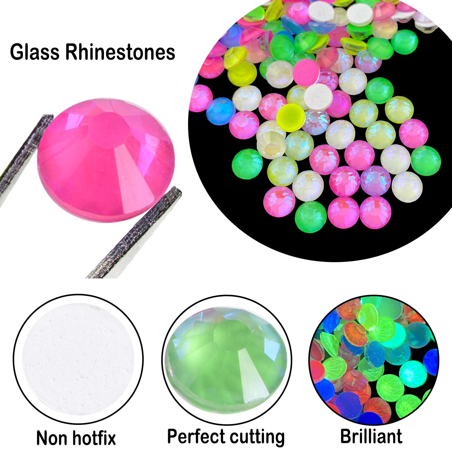 Flatback Glass Rhinestones,Bedazzler Gems 1440pcs Non Hotfix Crystal Rhinestones for Nail Charms Crafts Clothes Tumblers,Mixed AB Neon,SS20