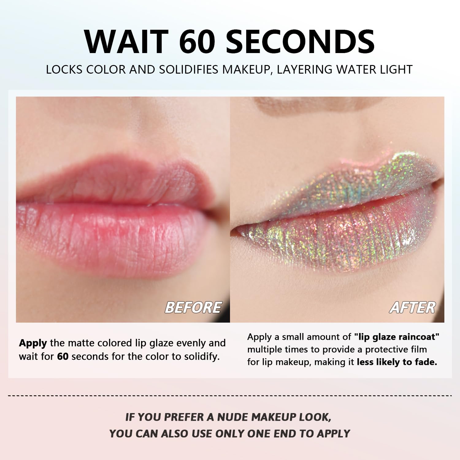 CHARMACY 2 In 1 Multichrome Moisturizing Lip Gloss, Double Head Liquid Lipstick, Mirror Waterproof Long Lasting No Fading Lip Balm, Hydrating Lip Plumper Waterlight Glossy Makeup #003