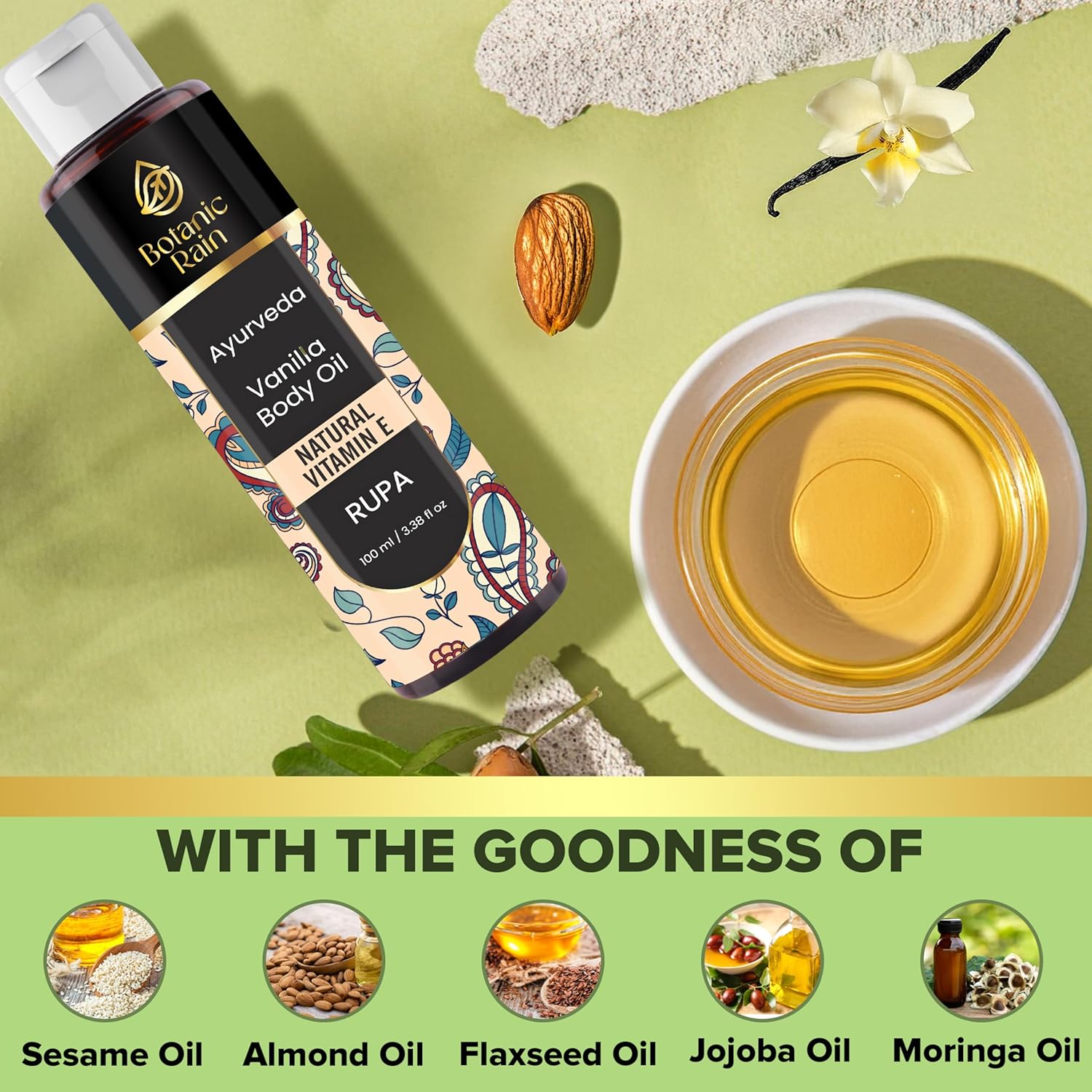 - Natural and Organic Ingredients: Our ayurveda body oil is made with natural and organic ingredients, which means it's gentle on your skin and free from harsh chemicals and synthetic fragrances. Vanilla oil is suitable for use on all skin types, including sensitive skin. Ayurveda products are designed to nourish and hydrate your skin, leaving it feeling silky-smooth and radiant.