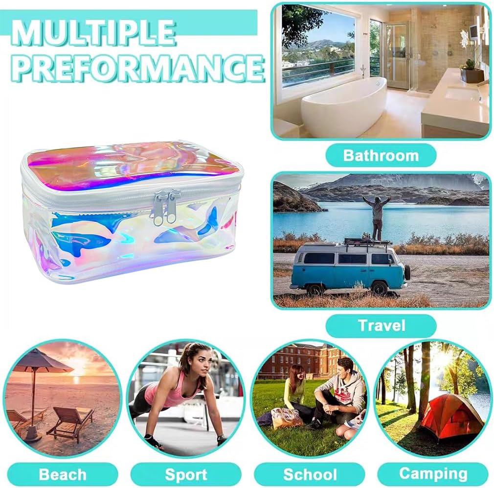 - đˇăPortable and StylishăOur portable holographic makeup bag is 20x14x8cm/7.87x5.51x3.15inches,lightweight and durable.Transparent material allows for easy visibility of internal items.Convenient for you to quickly find and retrieve items,bringing you more convenience