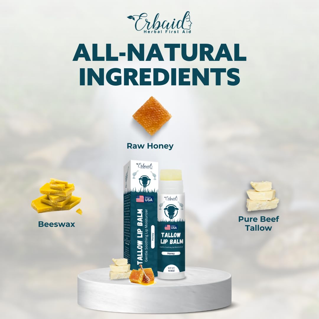 - INTENSELY HYDRATING FORMULA: Immerse your lips in moisture with our grass-fed organic beef tallow lip balm. Crafted with natural fats, akin to those in human skin, it maintains your lips' moisture barrier for enduring hydration and velvety softness.
