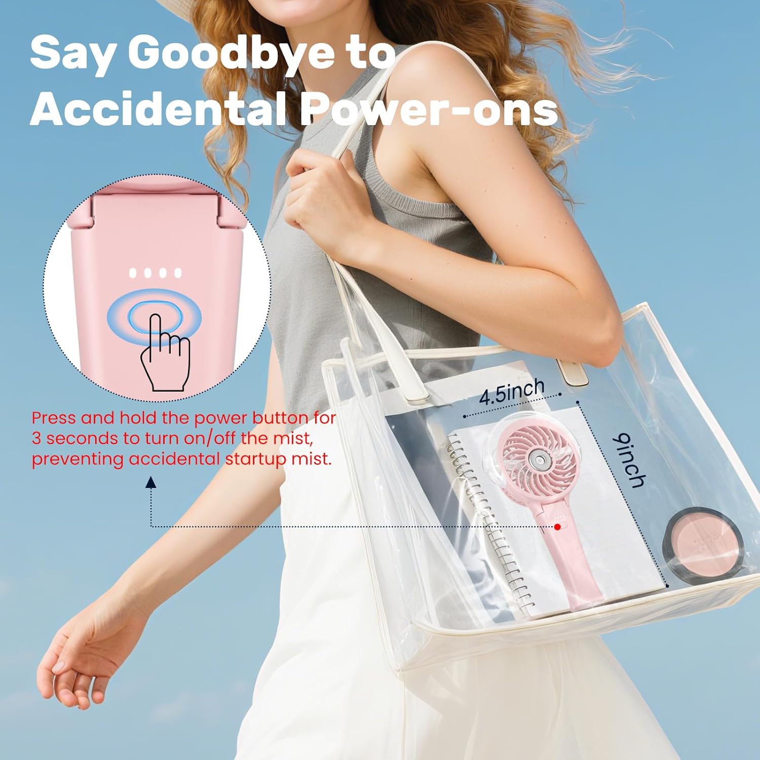 - How to turn on/off the mist: Press and hold the power button for 3 seconds to turn on/off the mist.