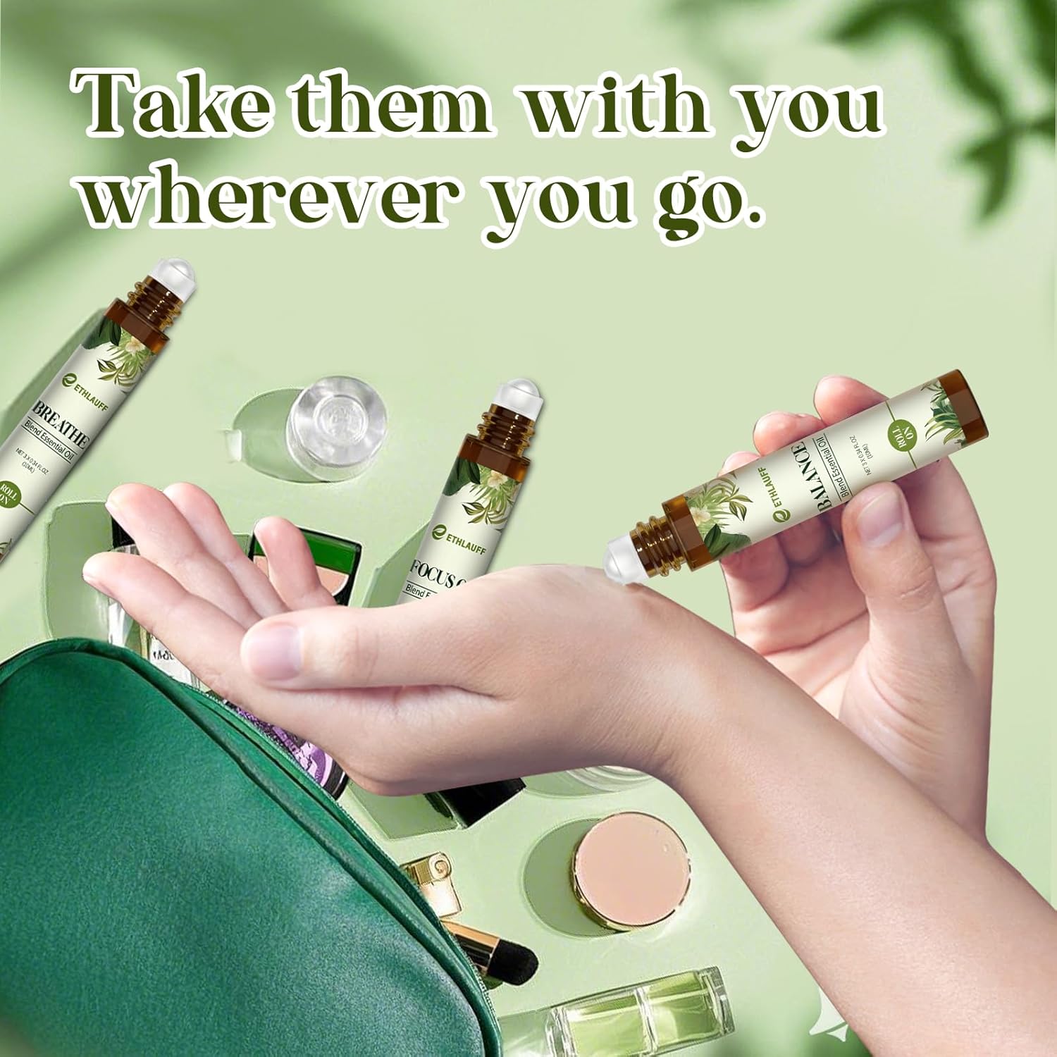 - Compact and Travel-Ready â This set features 3 roll-on bottles, perfect for effortless application and portability. Whether youâre at work, on the move, or simply need a swift boost during the day, these conveniently sized, spill-proof bottles let you experience the advantages of aromatherapy anytime, anywhere.