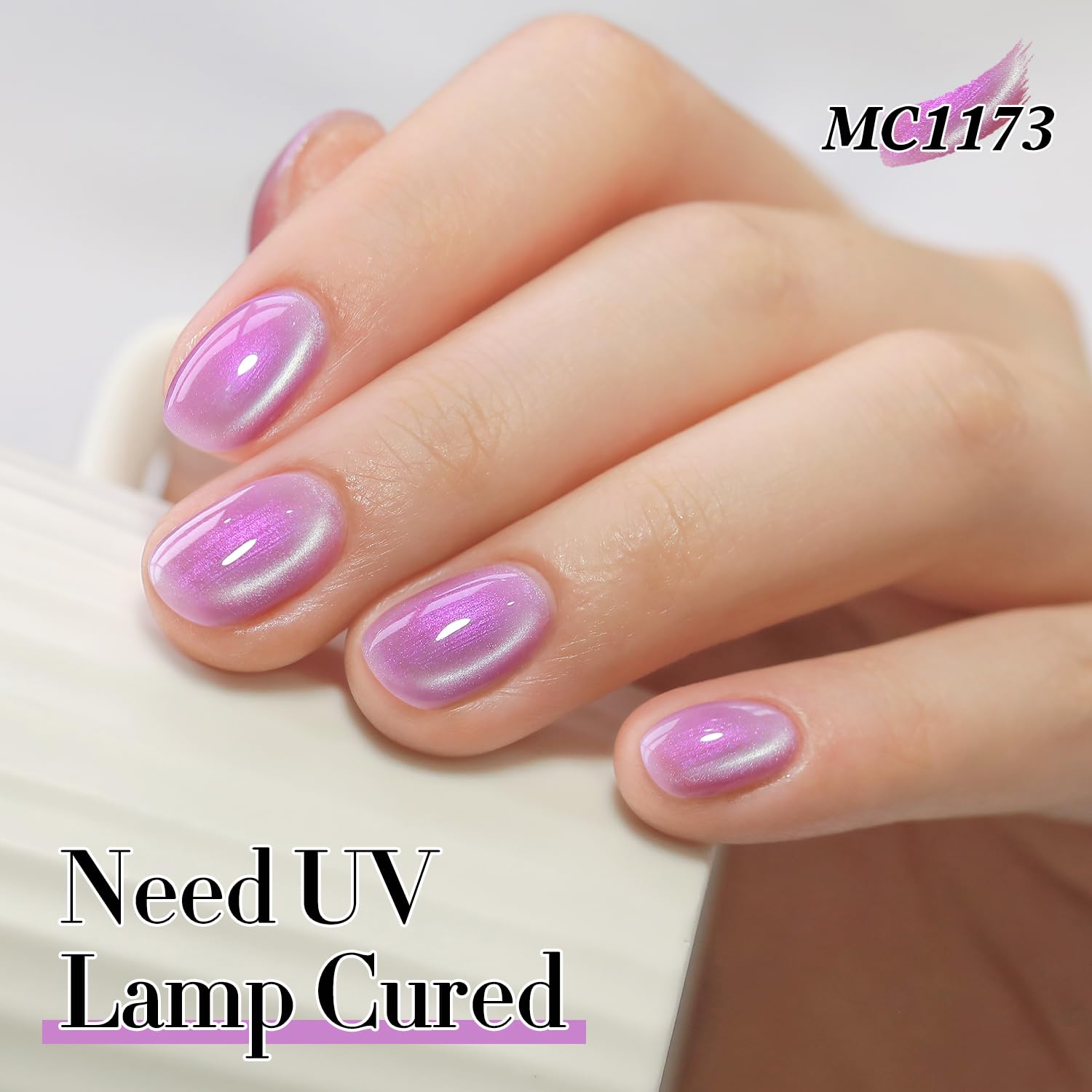 Double Rhythm 0.5 Oz Cat Eye Gel Polish with Magnet Same Color Same Bottle Holographic Glitter Shimmer Translucent Color Salon 15 ML Magnetic Nail Art (Mermaid Purple-MC1173)