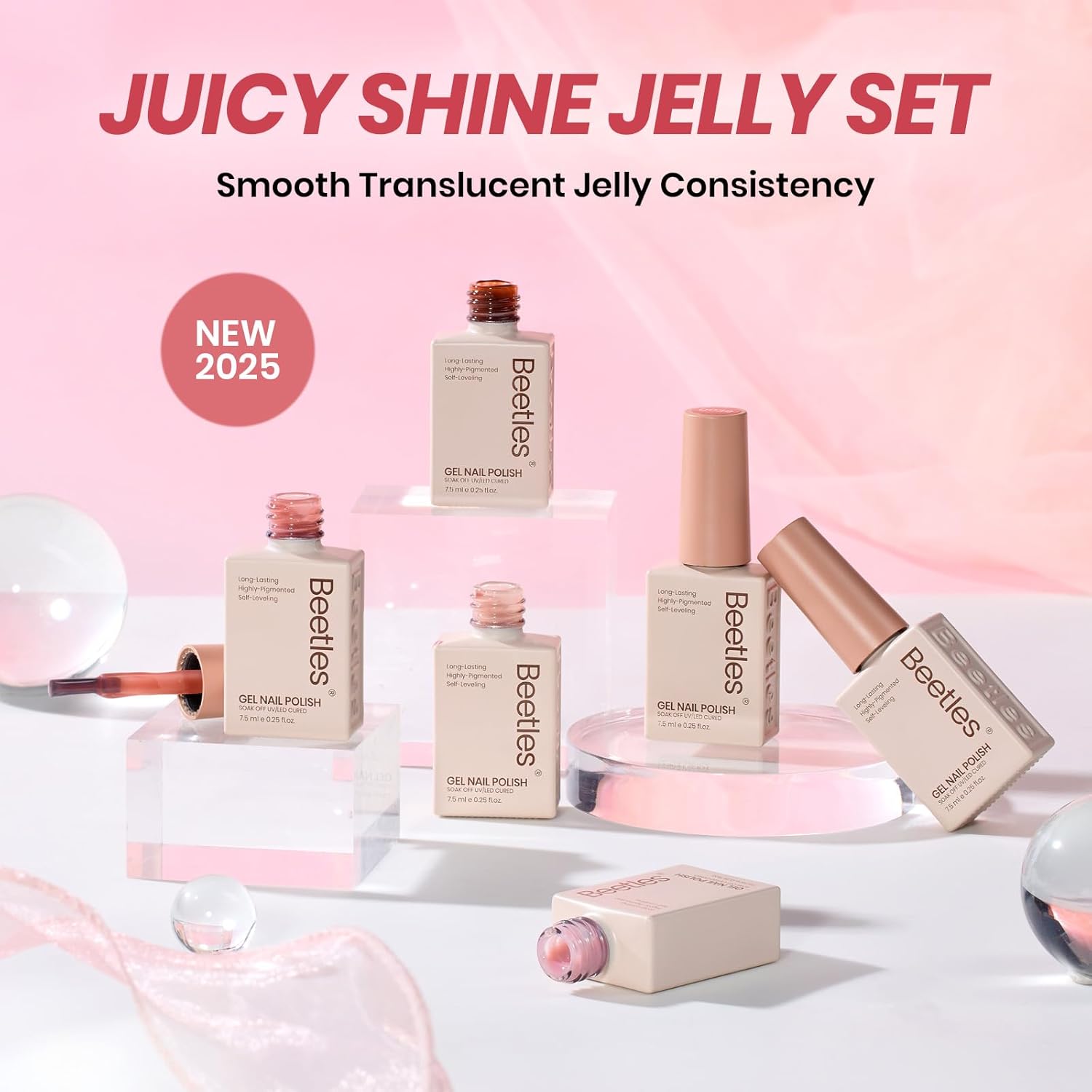 - 【Tender Years Jelly Gel Collection】Beetles New 6 Colors Nude Pink Red Brown Fall Jelly Gel Nail Polish Set. Jelly gel nail polish is a popular nail trend that gives your nails a glassy, see through appearance effect similar to jelly. This transparent sheer jelly gel can be used to create various nail styles, it perfect for nail lovers with different skin tones.