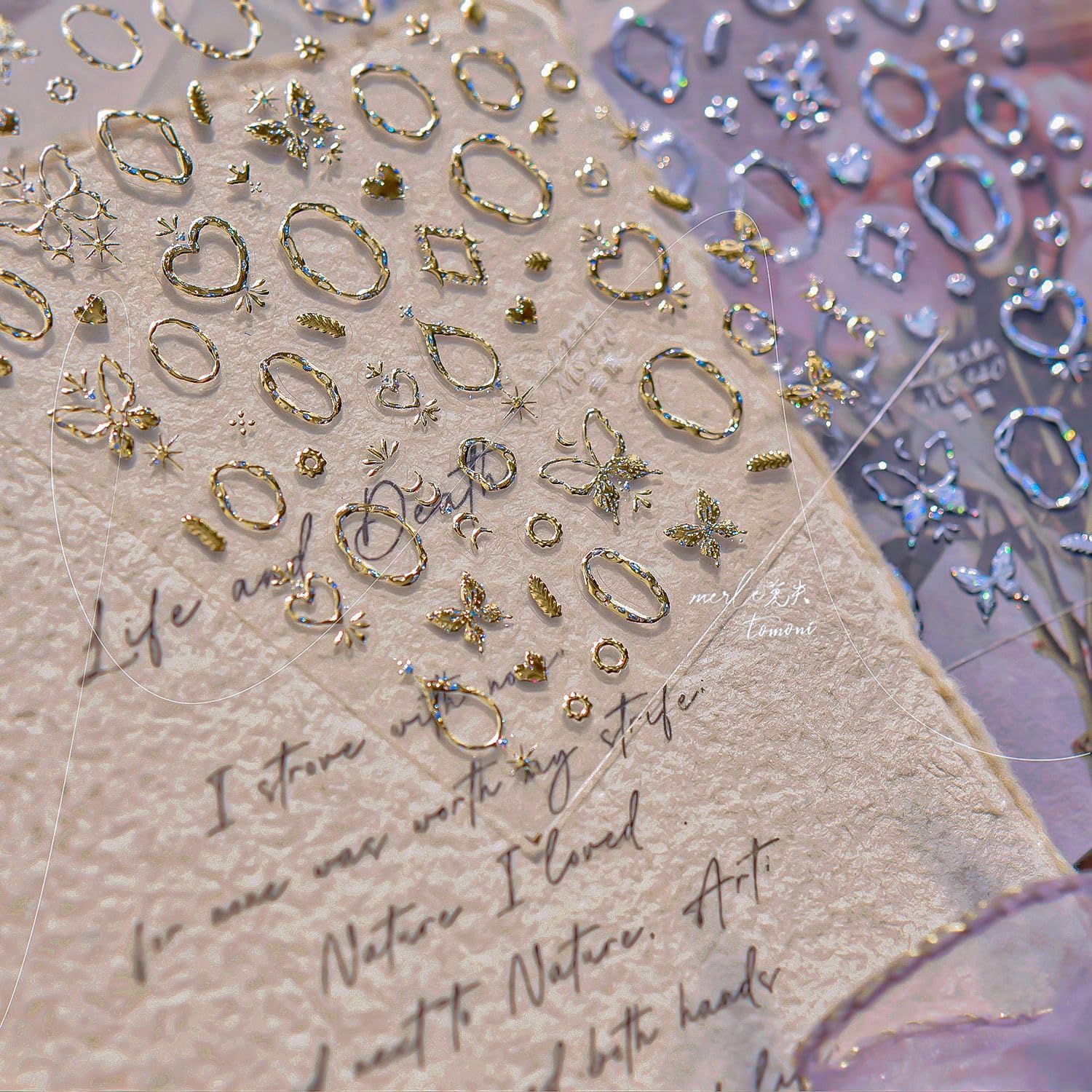 Gold Nail Art Stickers Butterfly Heart Nail Decals with Golden Design 5D Embossed Self Adhesive Nails Supply for Women Girls Kid Manicure DIY Decoration Accessories