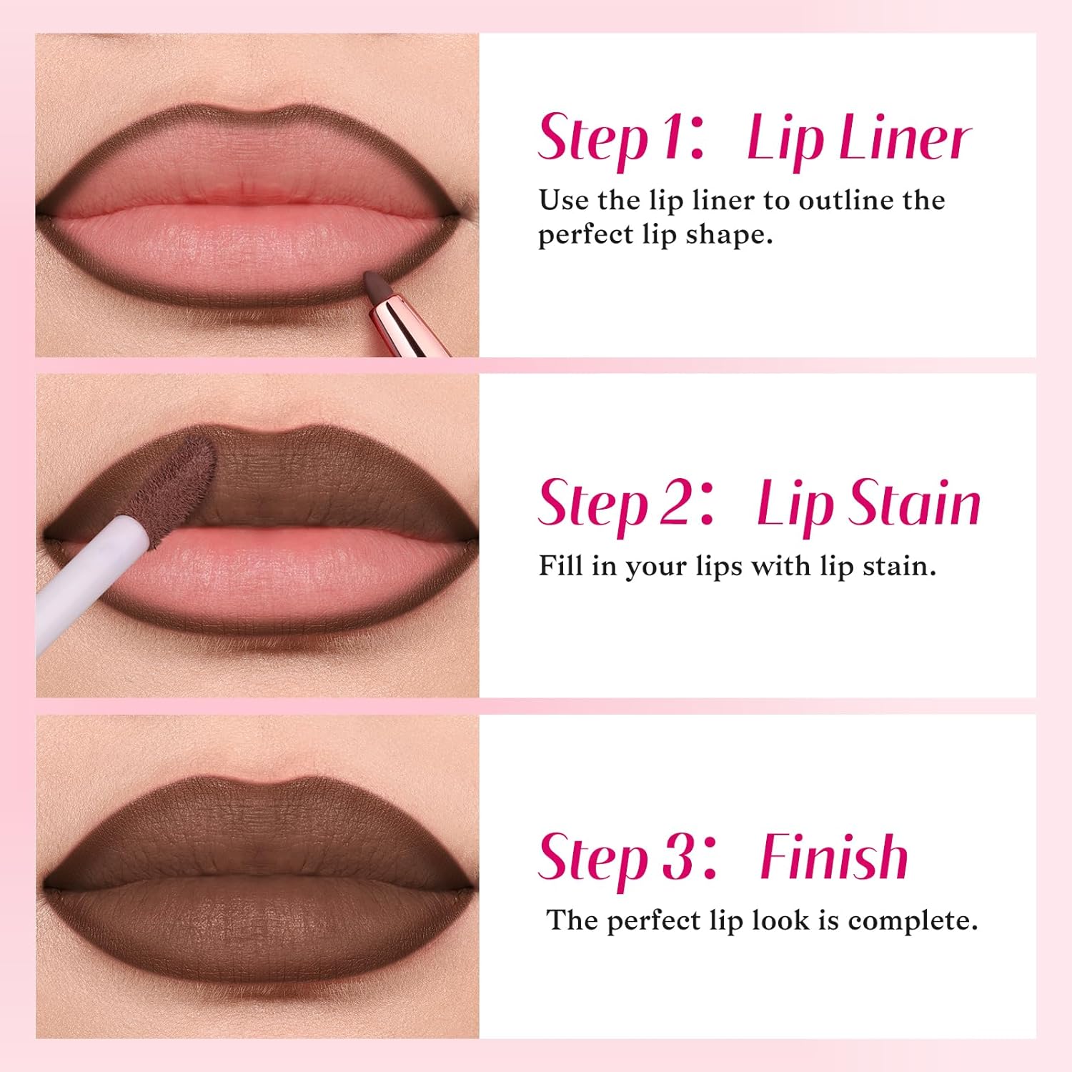 2-IN-1 Lip Liner and Lip Stain, High Pigmented Long Lasting Velvet Lip Tint, Well-Defined Lipliner, Weightless Waterproof Not Animal Tested, Matte Finish Makeup
