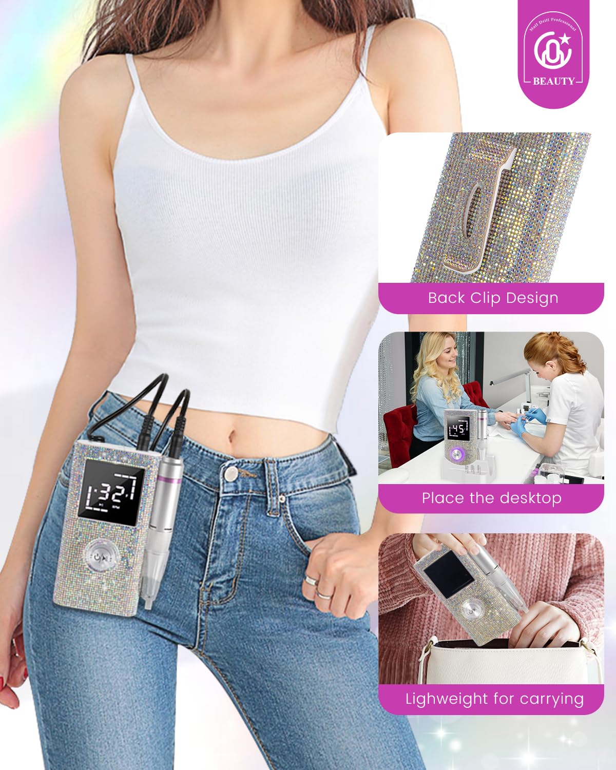 CozyZen Cordless Electric Nail Drill, 45000 RPM Rechargeable Diamond E-File, Portable & Low Noise for Acrylic/Gel Nails, Manicure & Pedicure - Professional & Home Use