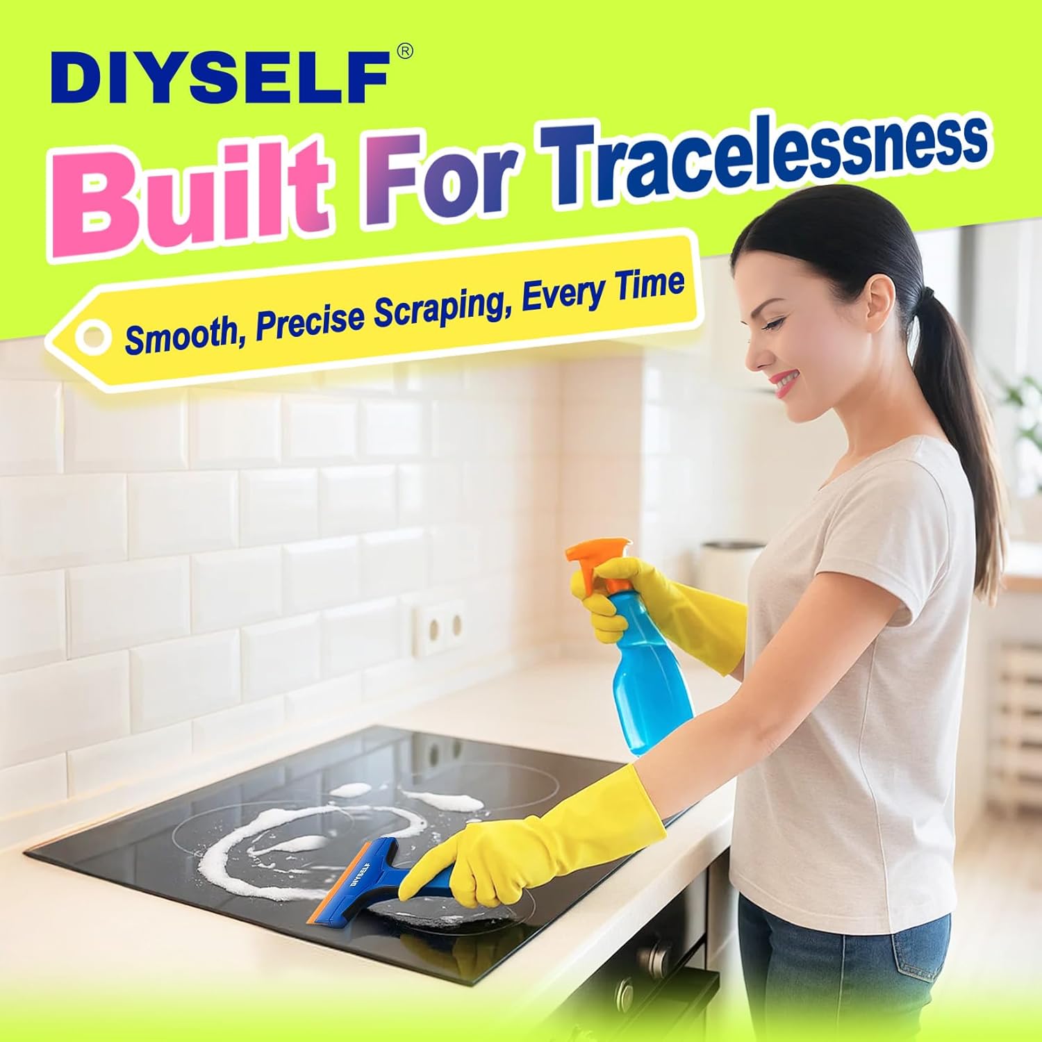 DIYSELF-Razor-Blade-Scraper, 1 Pack Razor Blade Scraper, Extra 5 PCS Orange Plastic Blades, Razor Blade Scraper Tool for Cleaning, Glass Scraper for Windows, Razor Scraper Tool for Car, Cooktop