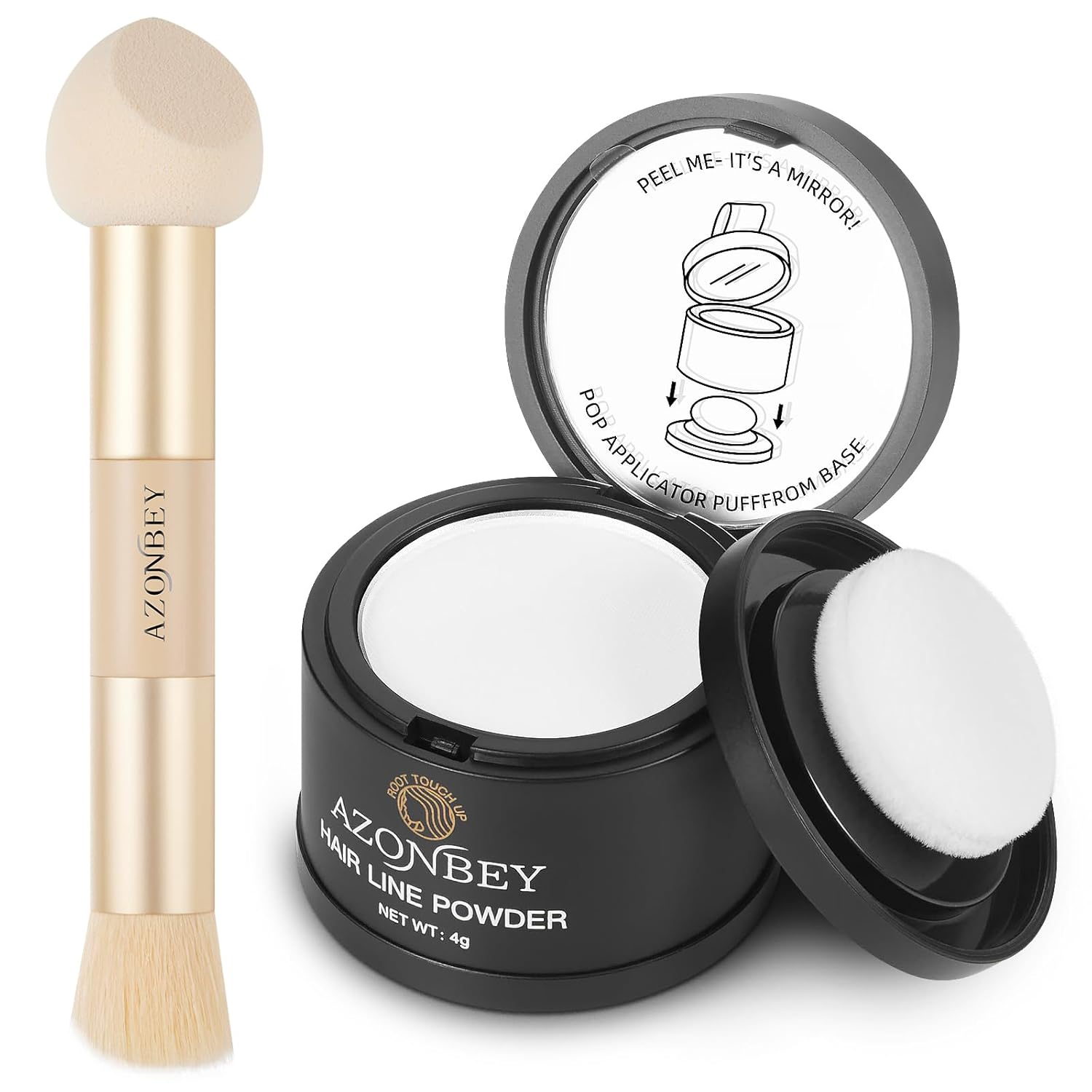 - 4.The Azonbey Root Cover Up Powder And Brush: This hairline powder works wonders on roots for women and men, providing an instant hair touch up powder for roots .It's an essential hair color powder root touch up for anyone needing quick and effective coverage. You can use your finger or our Beauty Brush Make it Simple and Useful.