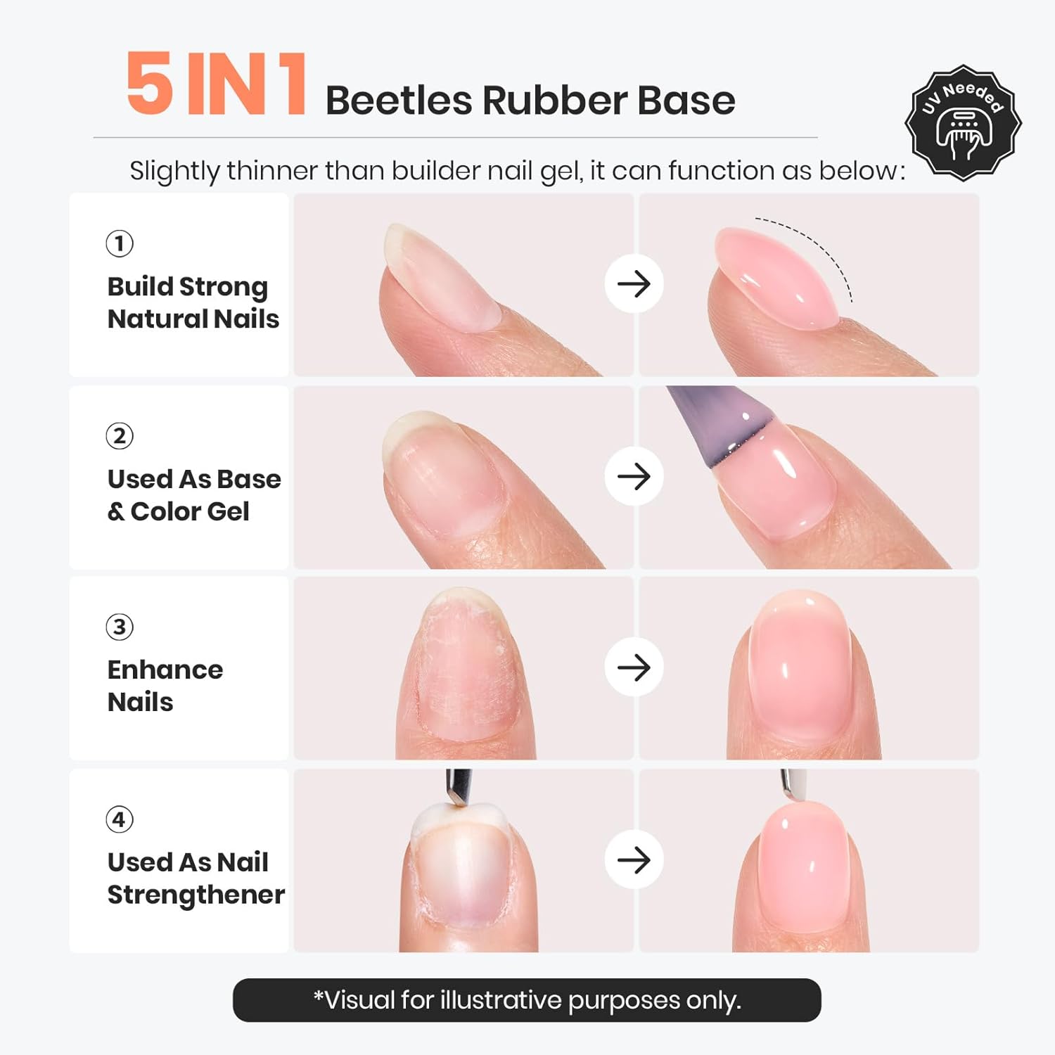 Beetles 15ml Rubber Base Builder Nail Gel - Clear Color Base for Nails Strengthening, Thickening and Sculpting, Soak Off UV LED Long Lasting for Weak and Damaged Nails