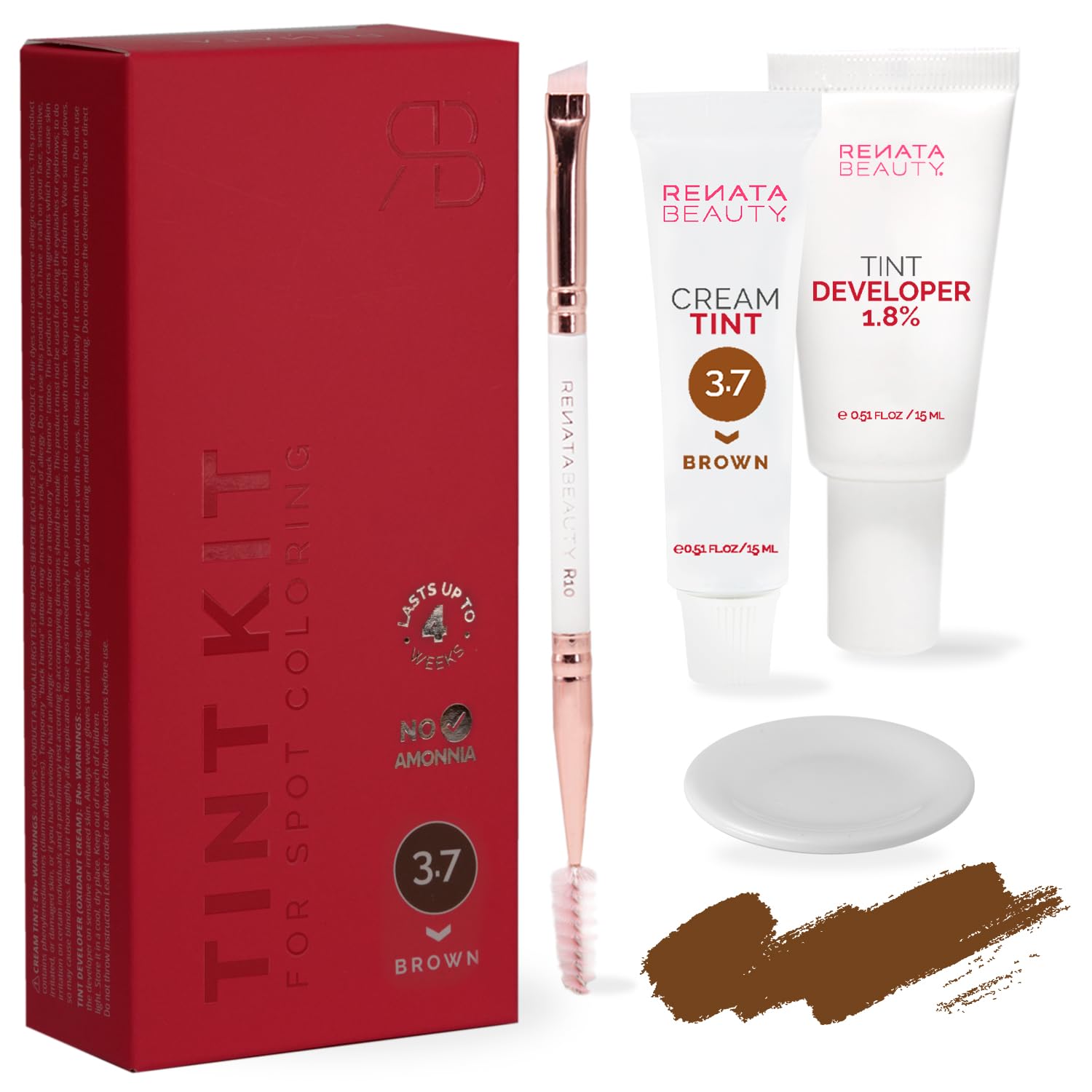 RB RENATA BEAUTY Tint Kit β Cream Hair Dye Kit with Developer and Application Brush for Spot Coloring - Covers Gray Hairs, Smudge-Proof, Long-Lasting Up to 4 Weeks, 20 Applications [Brown]