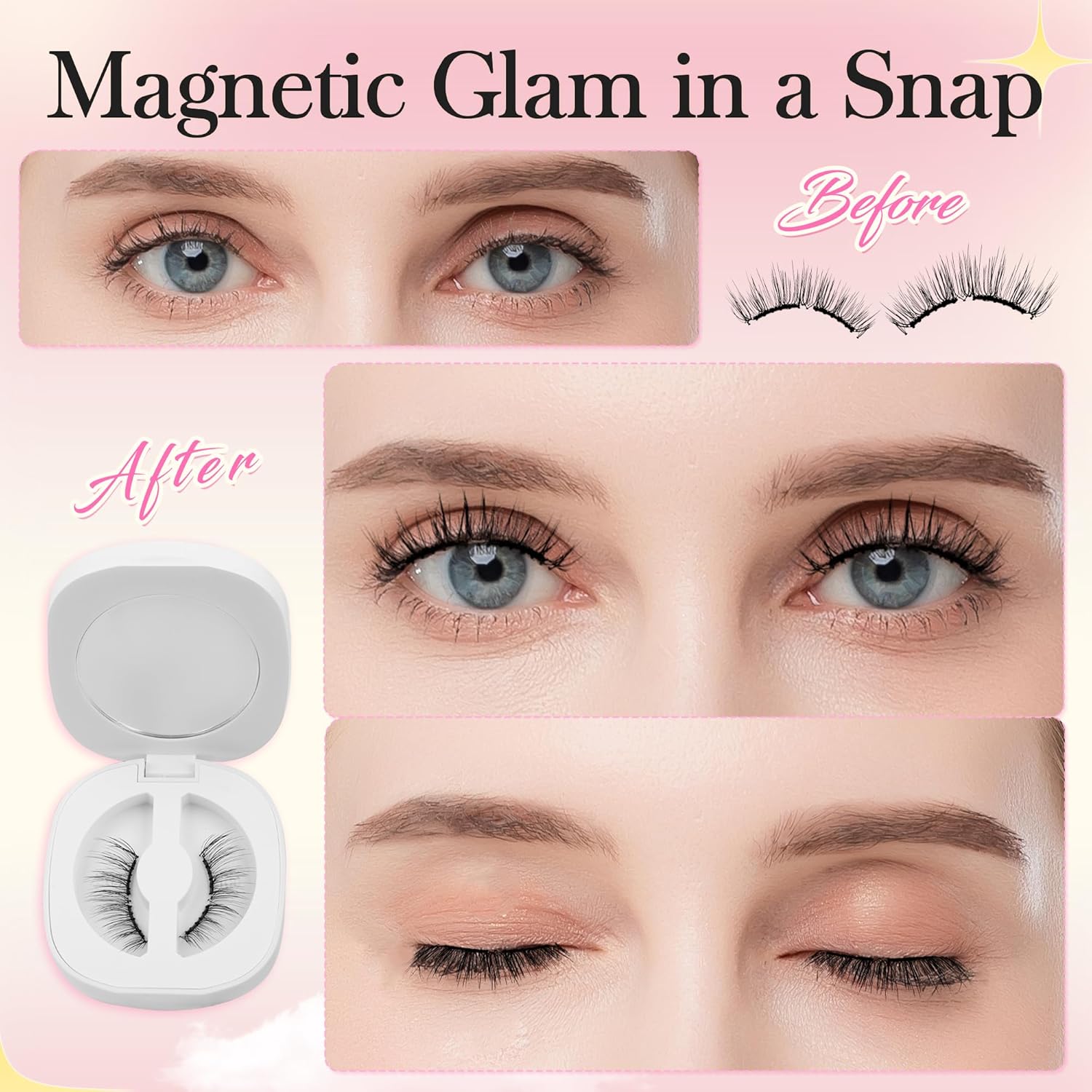 - 【Zero Glue, Zero Hassle】Skip the messy glue and harsh removers! These magnetic eyelashes offer a worry-free beauty experience that’s gentle and safe with every use, perfect for sensitive eyes and delicate lashes