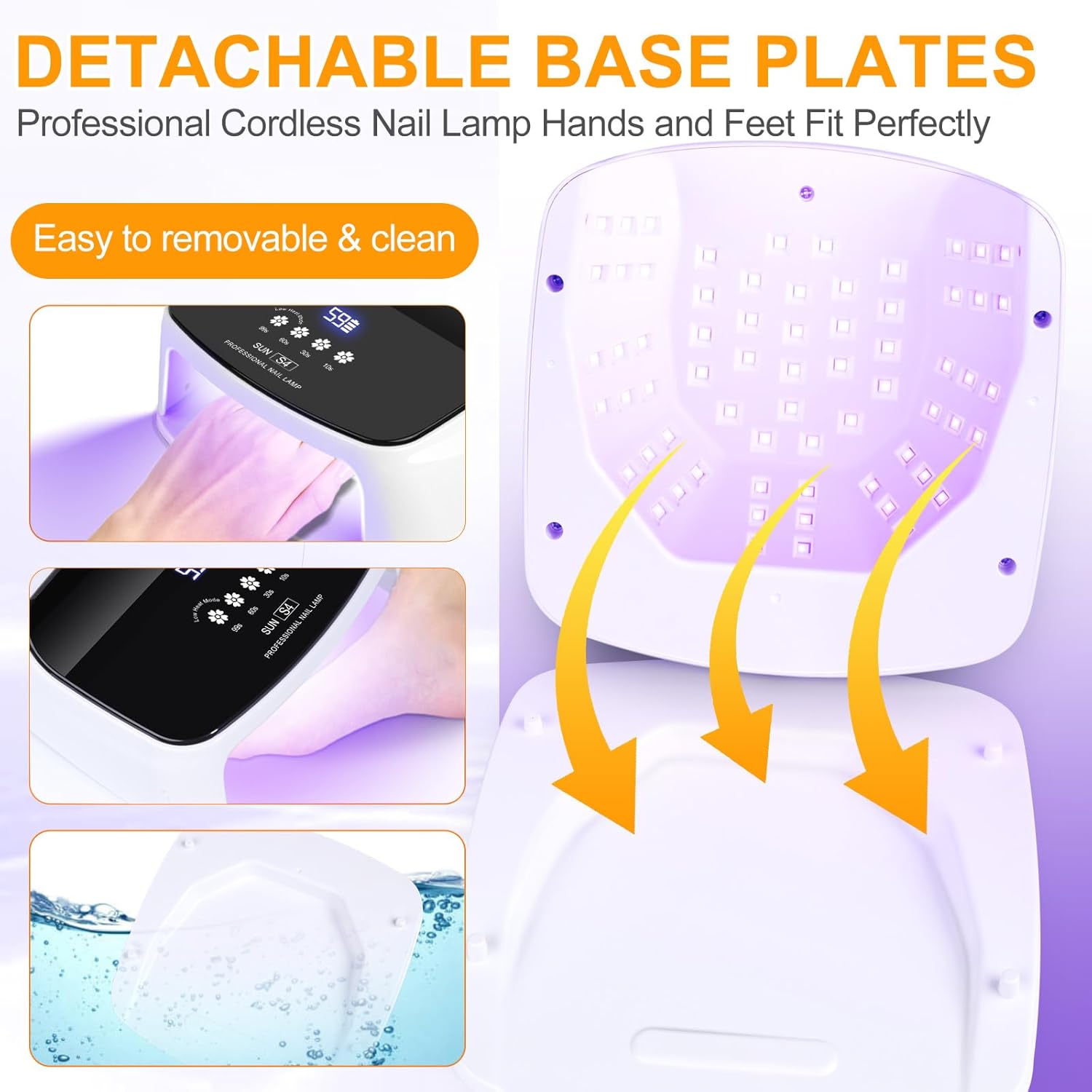 Cordless Nail Lamp, 288W 8 Hours Super Long-Lasting Rechargeable for Nail Art at Home and in Salons