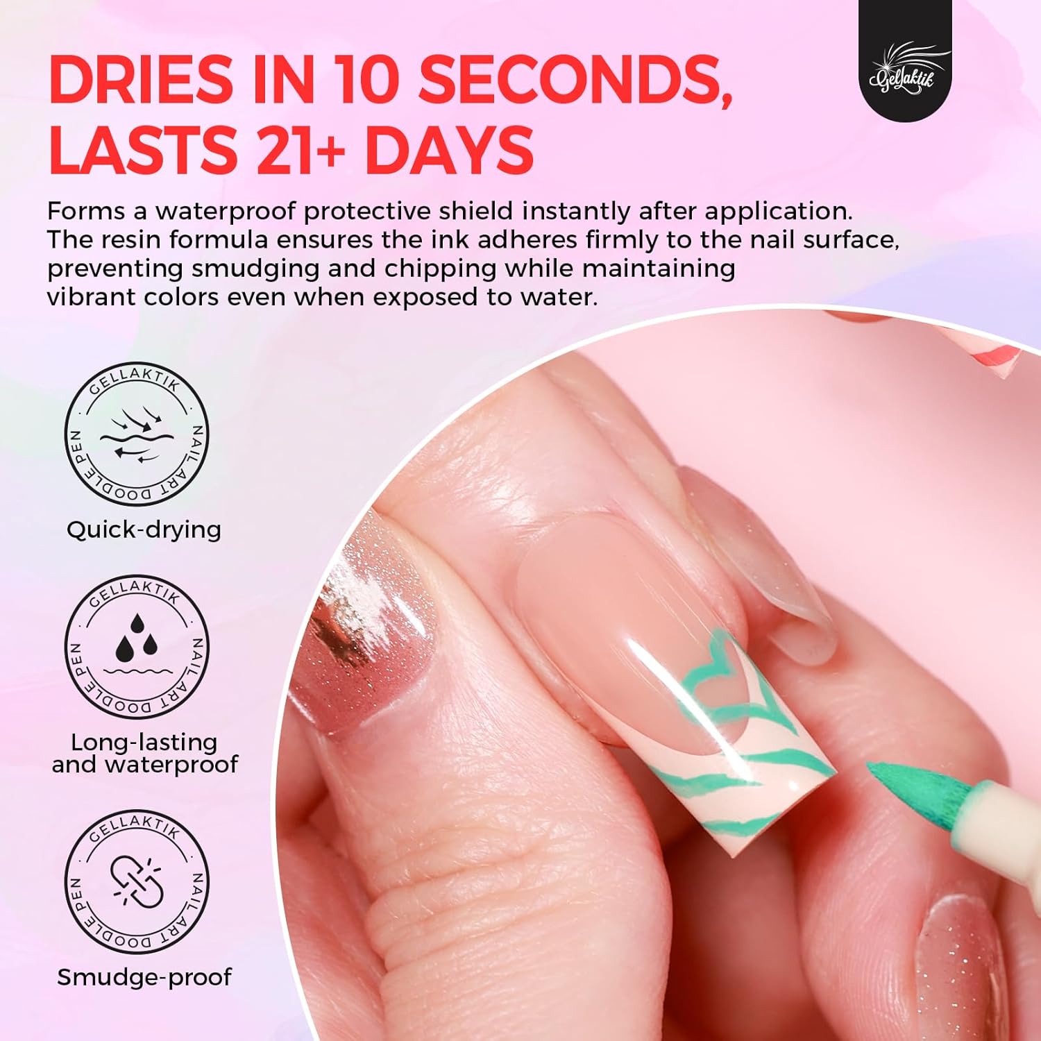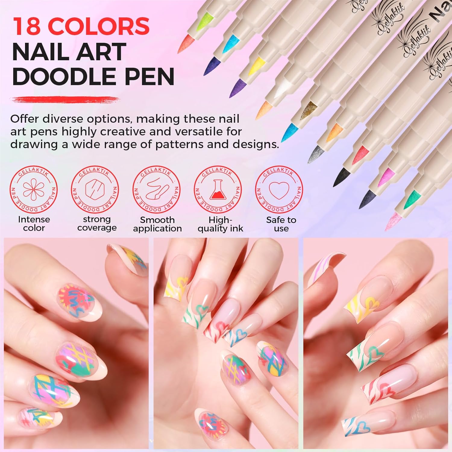 - 【Tips for Use】Before using the Nail Art Pens shake them well and press the tip vertically several times until the ink flows. After use, immediately recap the pen to prevent the tip from drying out.