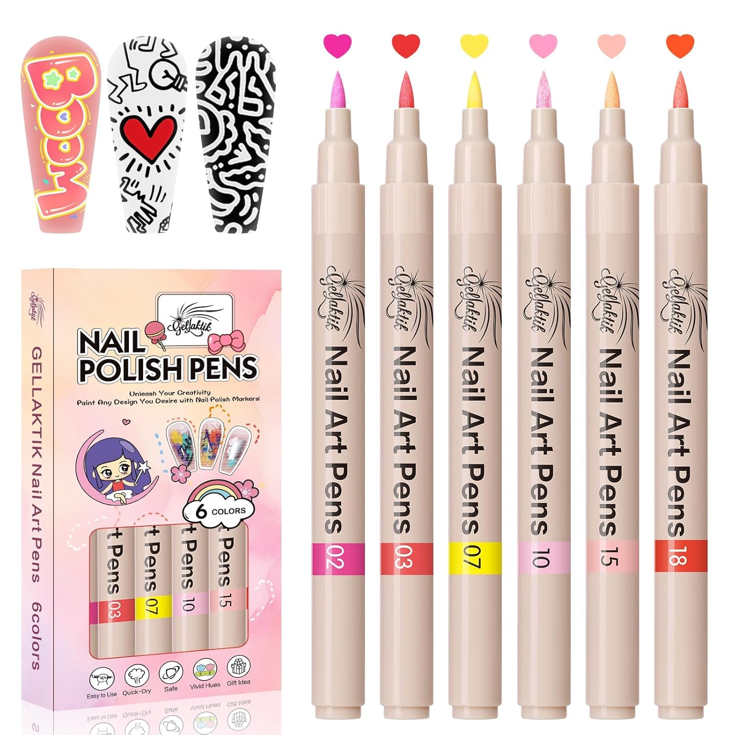 - 【Tips for Use】 Before using the Nail Art Pens shake them well and press the tip vertically several times until the ink flows. After use, immediately recap the pen to prevent the tip from drying out.