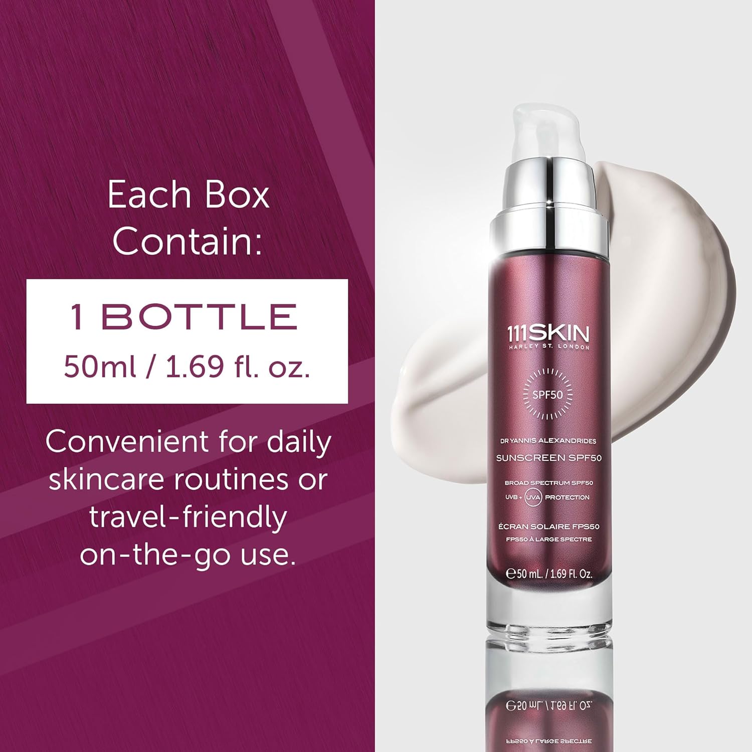111SKIN Sunscreen SPF 50, Mineral Face and Non Greasy Sunscreen for Daily Use, Broad-Spectrum UVA/UVB and Blue Light Protection, Niacinamide and Polyglutamic Acid, 50 ml